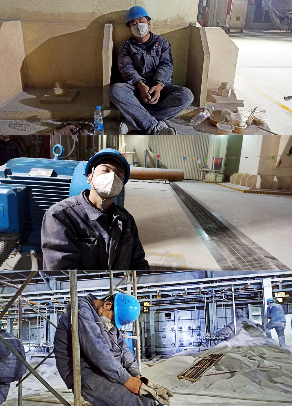 凌晨4:04,隨著灰渣量的減輕,電氣班檢查確認(rèn)控制回路完好,二級輸送帶啟動正常,除渣系統(tǒng)投入使用,避免了一次非計劃停爐,為項(xiàng)目部本次連續(xù)作戰(zhàn)畫上了一個圓滿的句號,而此時,疲憊不堪的搶修人員已經(jīng)在等候間歇就地睡著了……