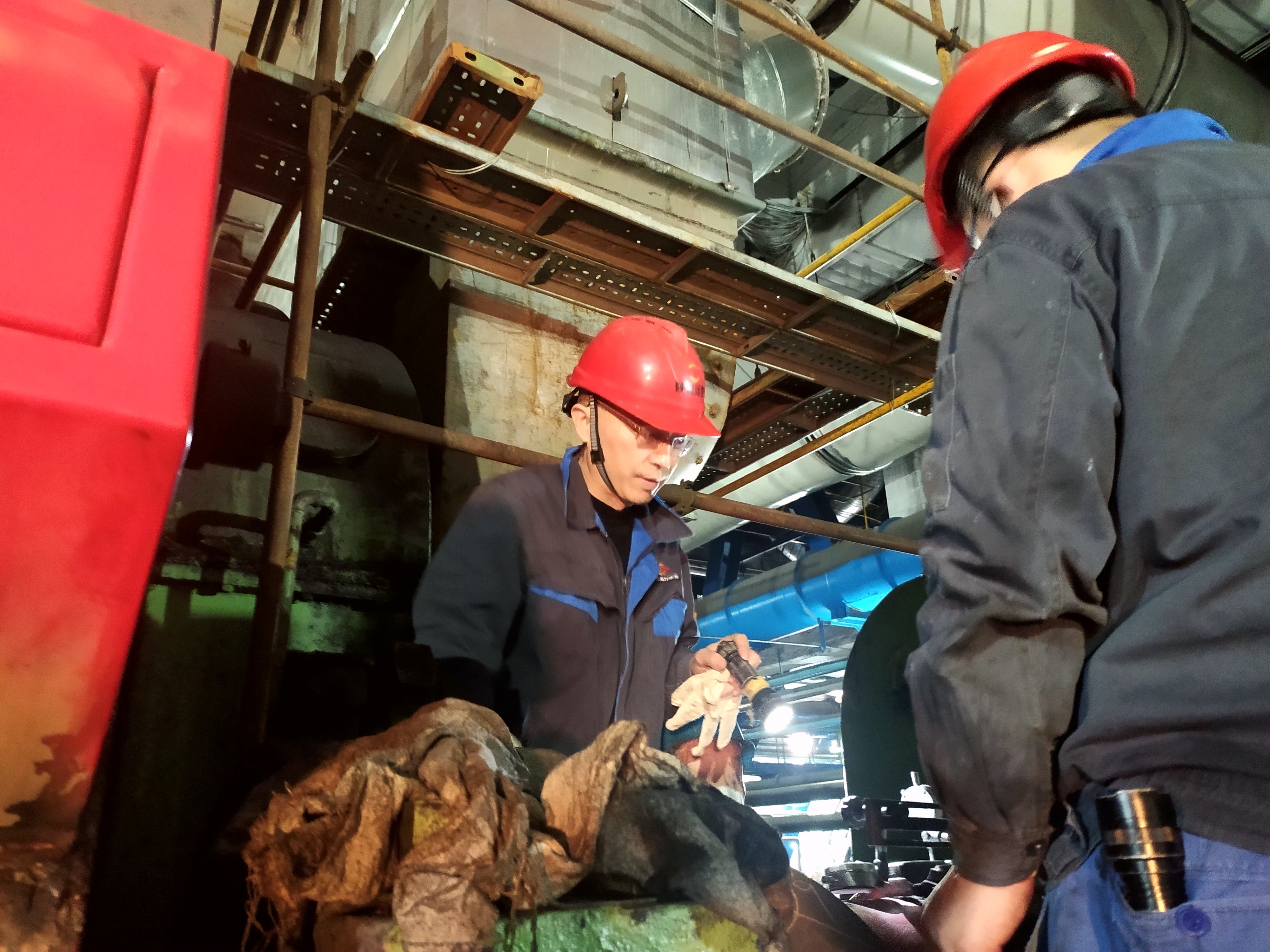 10:40,進(jìn)了#5爐零米磨煤機(jī)檢修現(xiàn)場(chǎng),劉宏二話不說,就上了操作平臺(tái),或彎下身,或蹲在地上查看檢修情況,不時(shí)和工作人員交流著,又交代了幾句“抓緊工期,注意安全”后,劉宏從平臺(tái)上一躍下來,說:“走,12米。”
