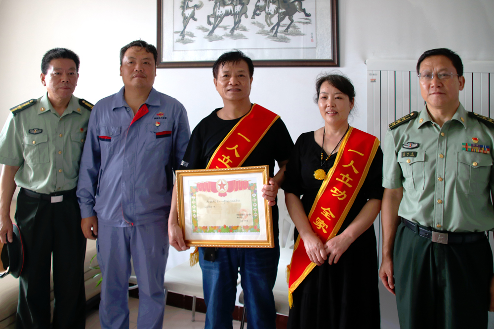 7月23日,咸陽(yáng)市渭城區(qū)武裝部一行送來(lái)喜報(bào),正陽(yáng)鎮(zhèn)政府、公司渭河項(xiàng)目部等相關(guān)單位人員為尚照熙一家送去關(guān)懷與祝福,共同見(jiàn)證了這激動(dòng)人心的一刻。當(dāng)天上午,咸陽(yáng)市渭城區(qū)武裝部一行上門為尚照熙夫婦戴上“一人立功,全家光榮”的鮮紅綬帶,并送上喜報(bào)和慰問(wèn)金。