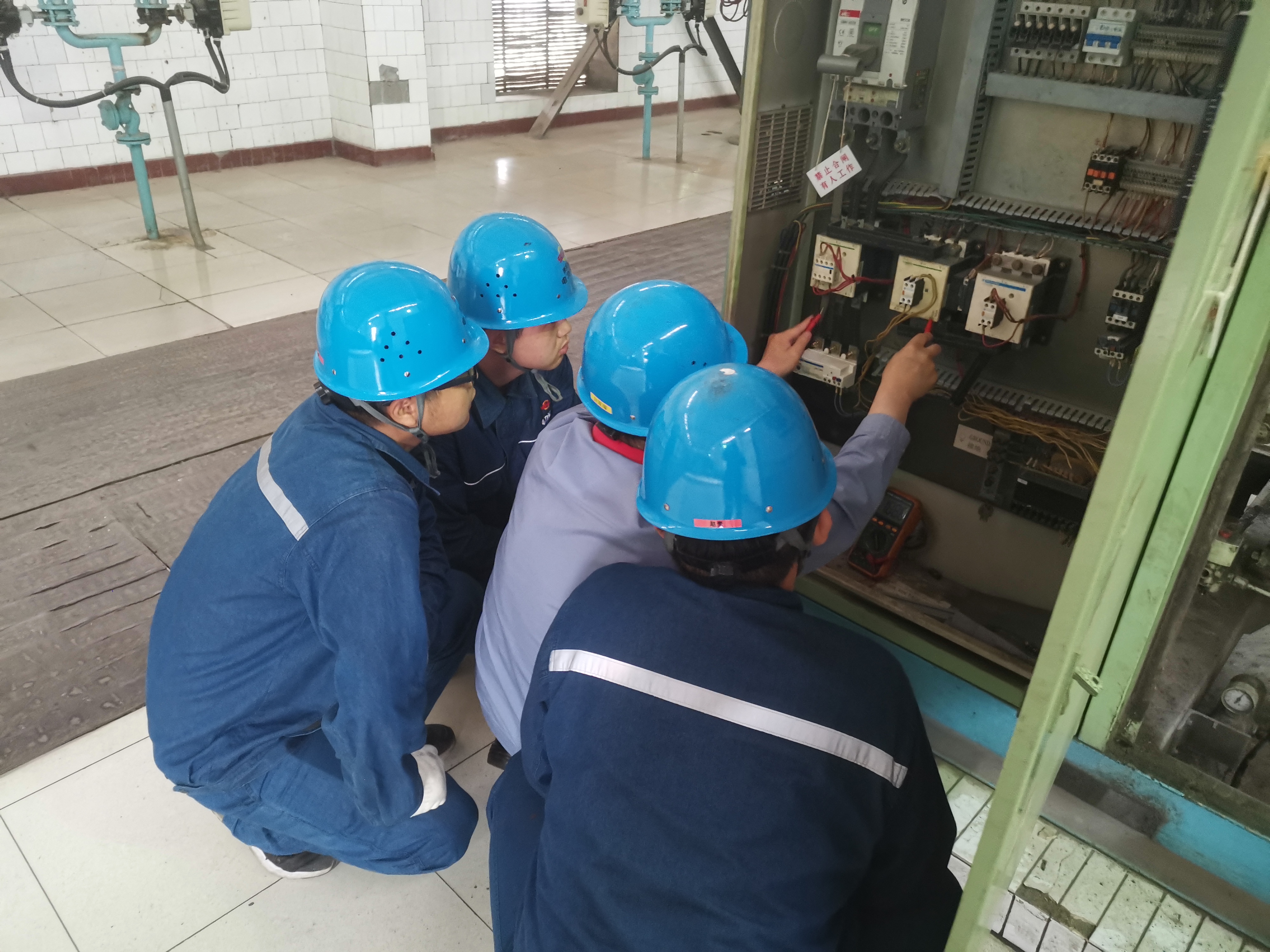培訓(xùn)課上,控制班班長(zhǎng)劉軍耀對(duì)空壓機(jī)二次回路進(jìn)行了講解,以提問的方式詳細(xì)闡述了電機(jī)星型三角型電路的原理和啟動(dòng)過程及電機(jī)反轉(zhuǎn)時(shí)的處理方法。在檢修現(xiàn)場(chǎng),劉軍耀帶領(lǐng)學(xué)員認(rèn)識(shí)了專用的電機(jī)更換工具和使用方法,在更換空壓機(jī)時(shí)讓學(xué)員摸索怎樣獨(dú)立接線該,如何保證安全且正確的接線,在聽取了學(xué)員的回答后一一給出了解決方案。