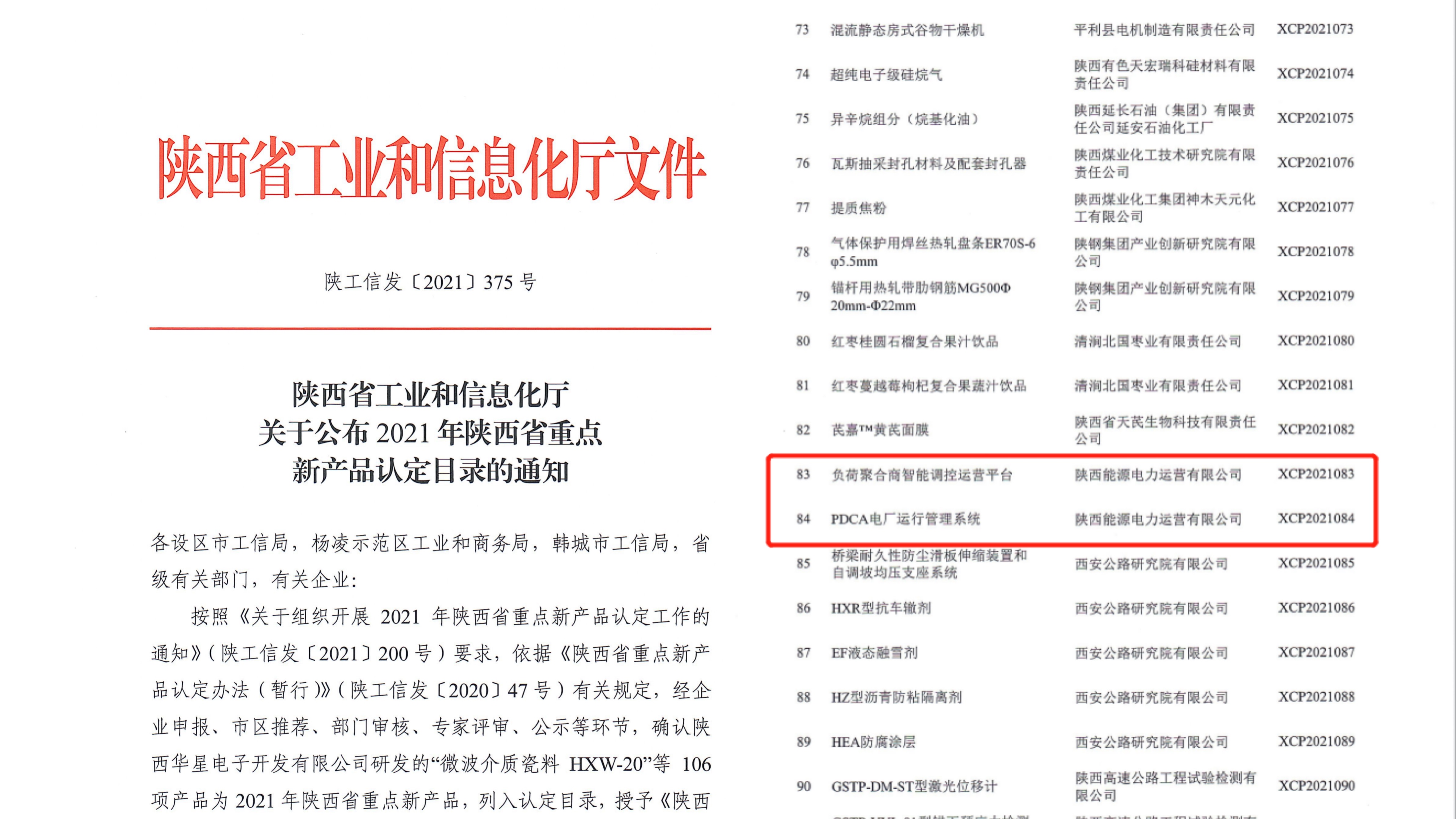日前,陜西省工信廳公布了2021年陜西省重點(diǎn)新產(chǎn)品認(rèn)定目錄,公司《負(fù)荷聚合商智能調(diào)控運(yùn)營(yíng)平臺(tái)》和《PDCA電廠運(yùn)行管理系統(tǒng)》項(xiàng)目被列入陜西省重點(diǎn)新產(chǎn)品目錄,并獲取認(rèn)定證書(shū)。入選項(xiàng)目經(jīng)過(guò)前期的軟件開(kāi)發(fā)、科技查新、專家評(píng)審、科技成果認(rèn)定等環(huán)節(jié)層層篩選,經(jīng)專家組認(rèn)定,達(dá)到了所在領(lǐng)域的國(guó)內(nèi)領(lǐng)先水平。
