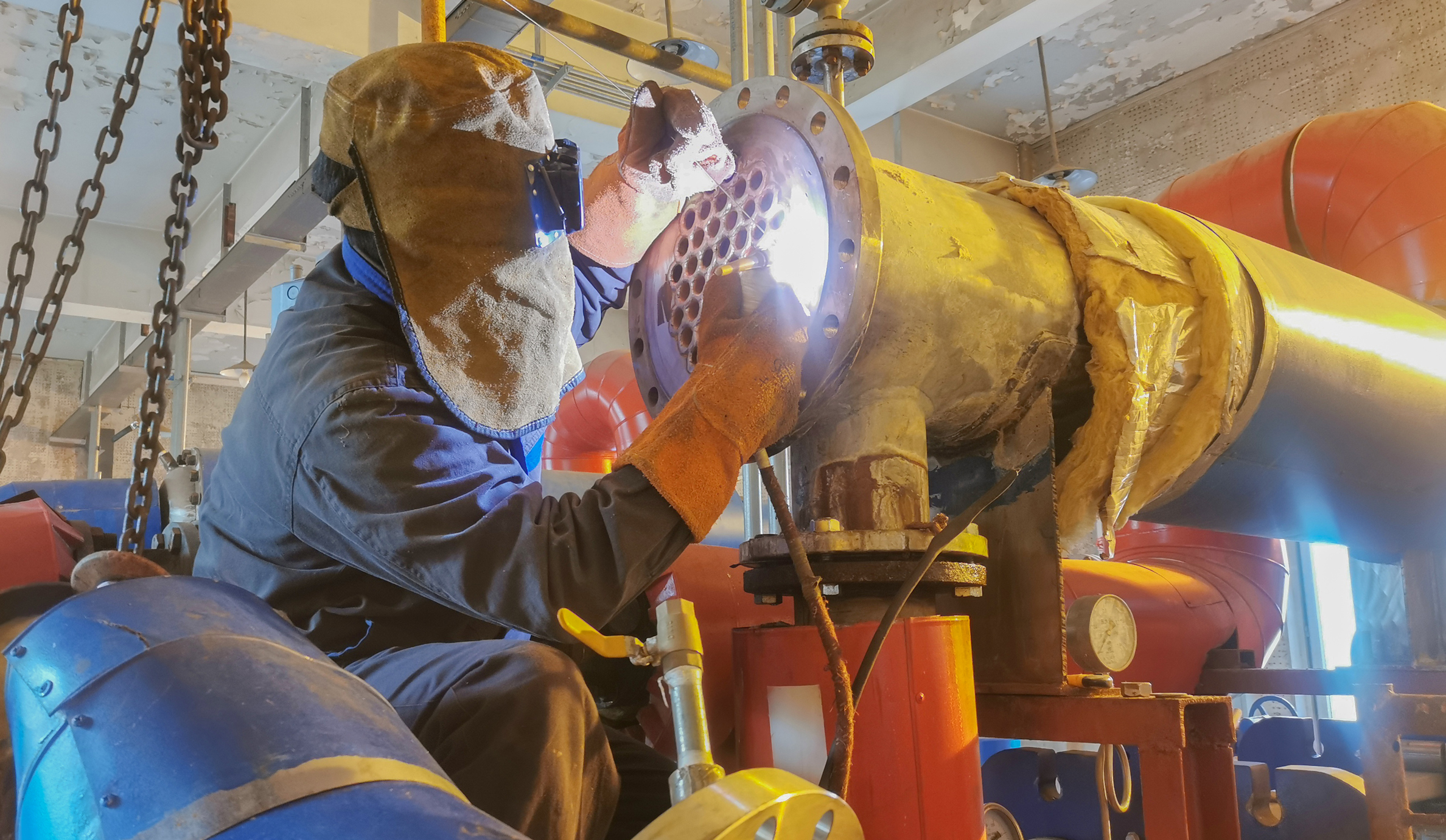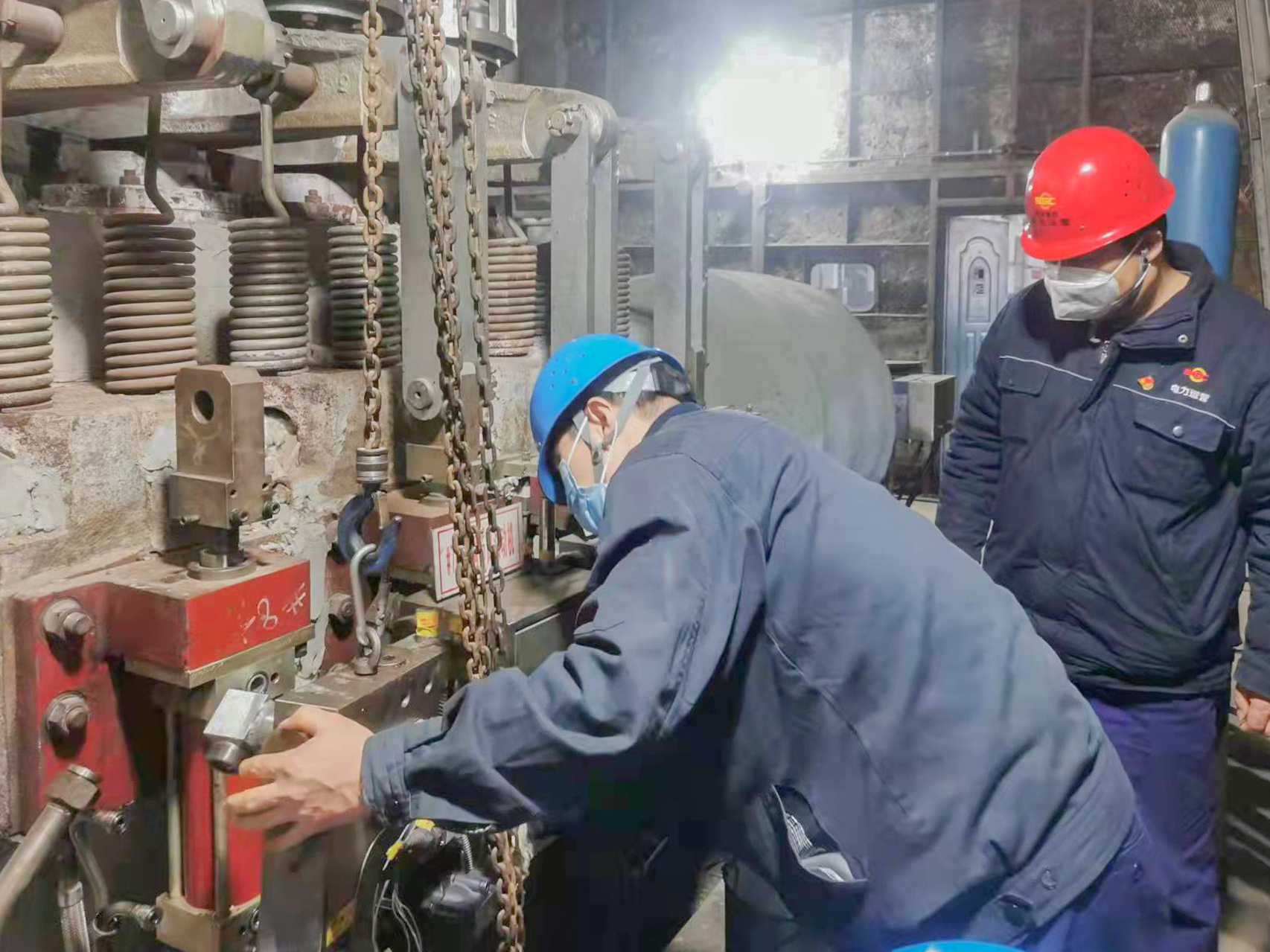 機務(wù)隊隊長王會勇就是眾多留守人員中的一個。疫情防控開始,他就一直吃住在生產(chǎn)現(xiàn)場。哪里有檢修任務(wù),哪里就有他的身影?!巴蹶犻L把生產(chǎn)現(xiàn)場當成自己的家了!”是同事說他最多的話。他總是一笑,說:“設(shè)備就像我們的娃,只有我在現(xiàn)場,才安心?。 陛o機班58歲的老師傅敬新民家就在附近的楊家灣,他從疫情開始就一直留守生產(chǎn)現(xiàn)場,堅決守好保電保熱“主戰(zhàn)場”。