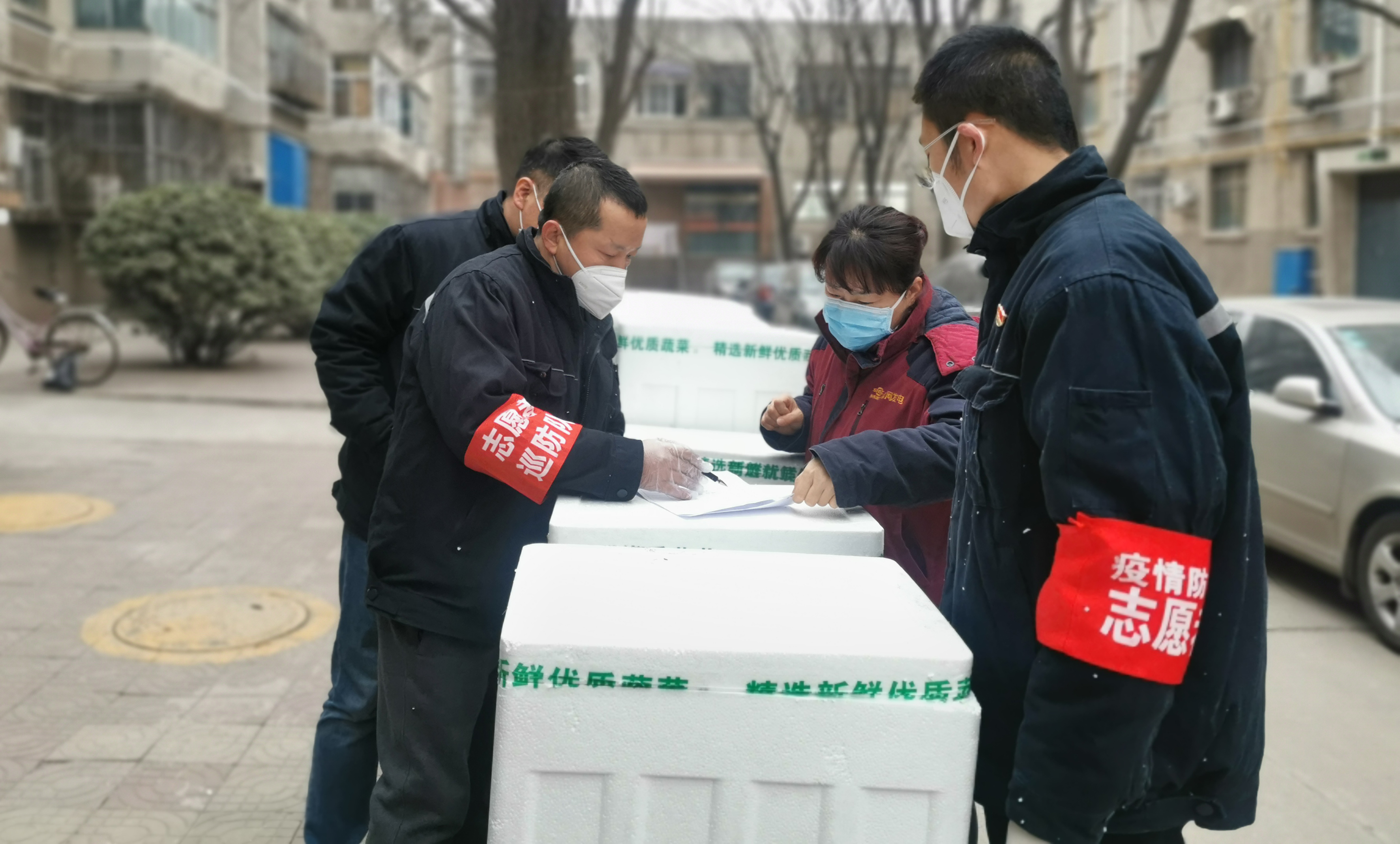 為了做好疫情防控相關(guān)工作,項目部組織組織了51人的志愿者服務(wù)隊,將政府發(fā)放的愛心菜逐一送到300多戶家中,并堅持協(xié)助因疫情影響壓力陡增的渭電職工食堂進行進門測溫、維持秩序等工作。