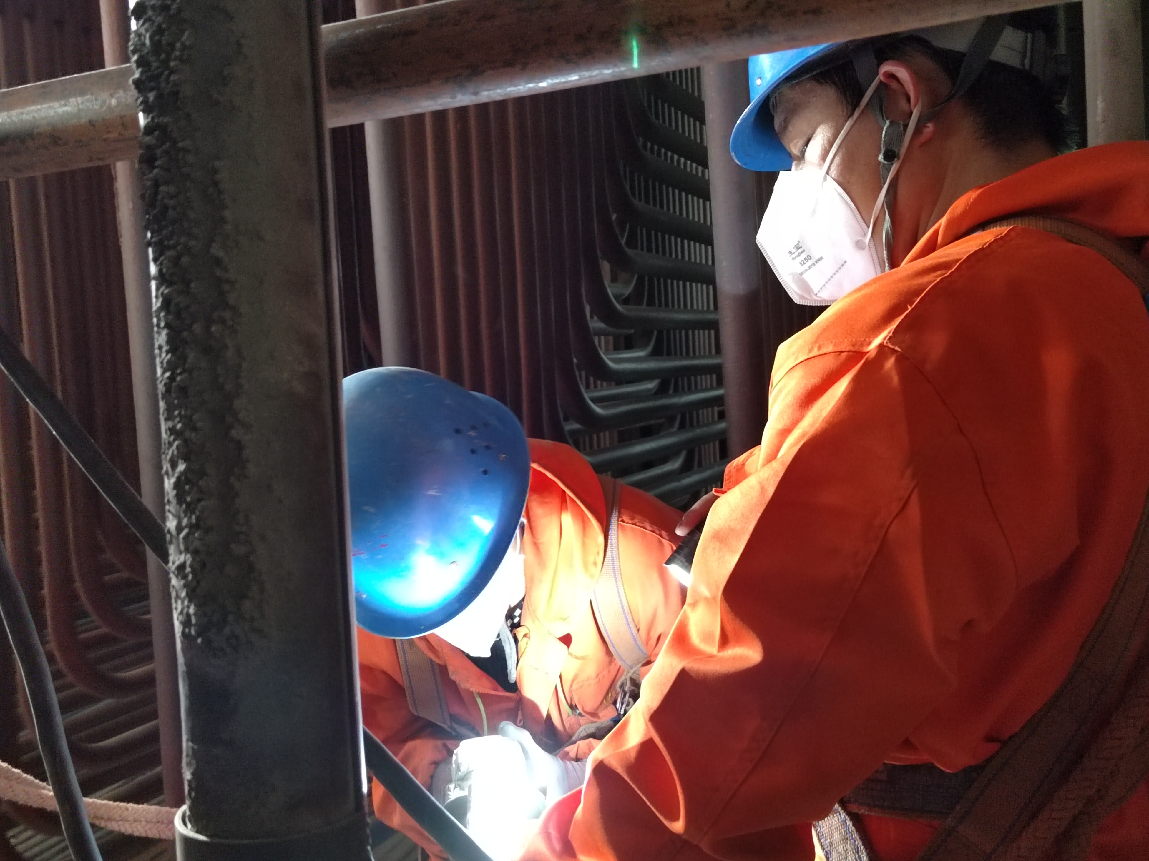 檢修期間,作業(yè)組人員嚴(yán)格遵守安全作業(yè)規(guī)程,狠抓質(zhì)量管理標(biāo)準(zhǔn)化、規(guī)范化,確保檢修工藝質(zhì)量,嚴(yán)格按照規(guī)范和方案要求組織施工。嚴(yán)格查驗(yàn)人員資質(zhì)準(zhǔn)入,建立質(zhì)量控制點(diǎn),按照施工技術(shù)標(biāo)準(zhǔn)執(zhí)行三級(jí)驗(yàn)收,對(duì)焊材使用、各類焊縫、管道材質(zhì)等細(xì)致檢查、嚴(yán)格把關(guān),始終保持“不完工、不放松”的精神狀態(tài),保障施工質(zhì)量全過程受控。此次檢修共計(jì)更換高溫過熱器、水冷壁管道68根130余米,177道焊口射線探傷一次合格。