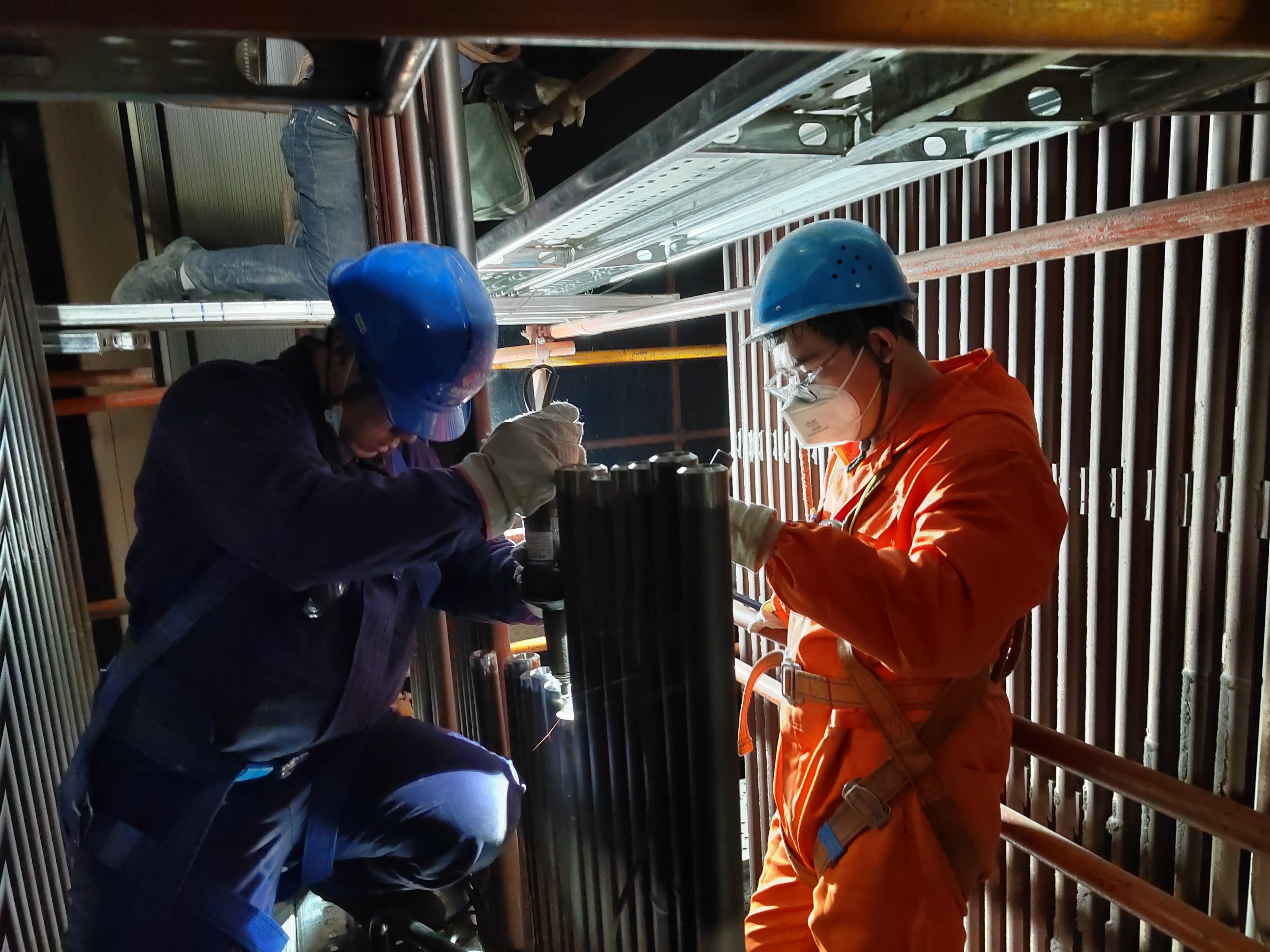 開工后,項(xiàng)目部嚴(yán)格把控受限、動(dòng)火、起重、高空等危險(xiǎn)性較大作業(yè)規(guī)范,對(duì)檢修項(xiàng)目進(jìn)行全方位監(jiān)督,實(shí)時(shí)掌握檢修動(dòng)態(tài),針對(duì)問題及時(shí)協(xié)調(diào)處置。檢修人員分為兩班24小時(shí)不間斷作業(yè),所有作業(yè)人員在現(xiàn)場(chǎng)進(jìn)行交接班,綜合辦主動(dòng)做好后勤保障,送飯送水到現(xiàn)場(chǎng)。