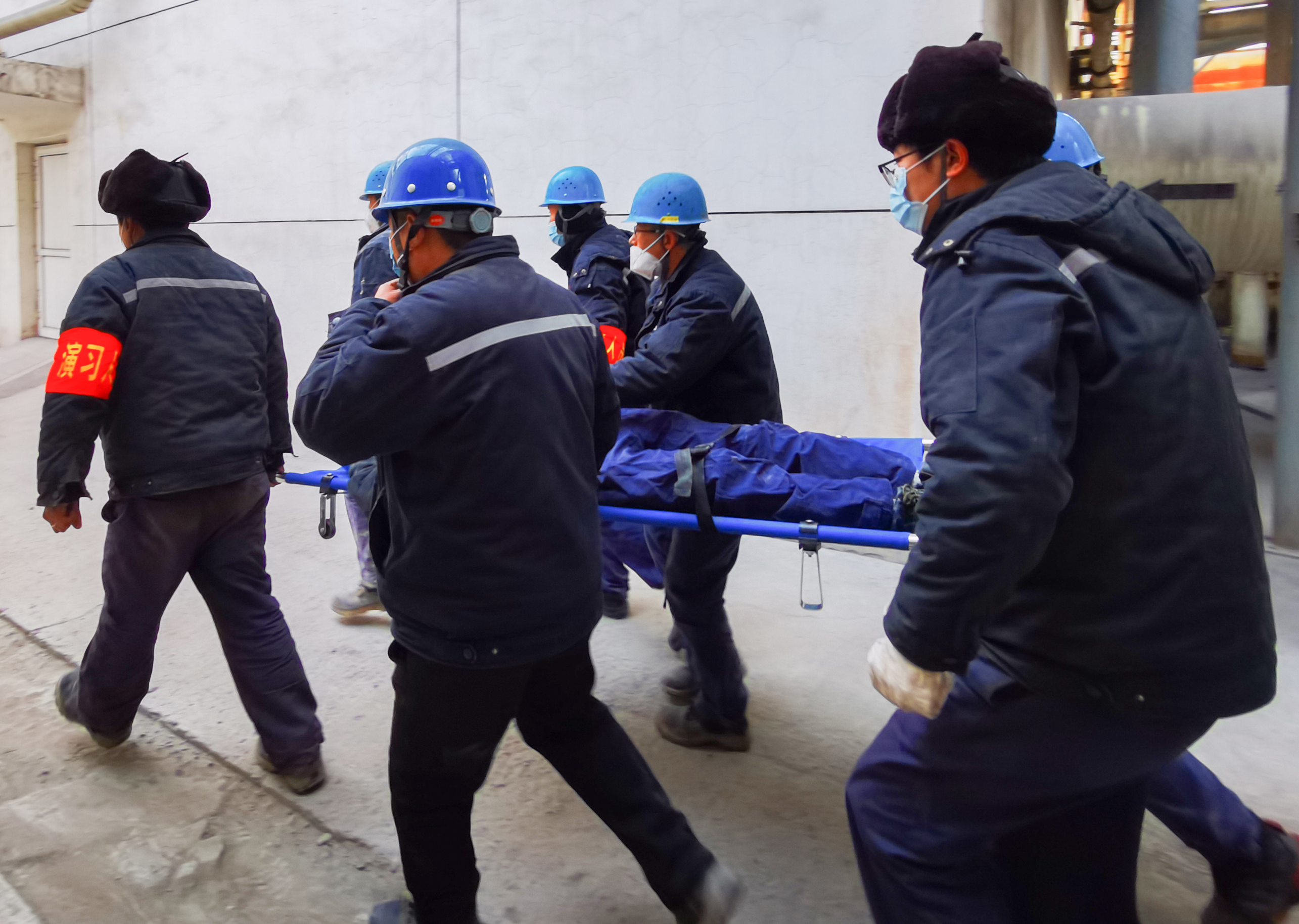 演練模擬吸收塔發(fā)生高處墜落事故,現(xiàn)場帶班人員發(fā)現(xiàn)險情后,立即封鎖現(xiàn)場,第一時間向上級報告情況。應(yīng)急演練小組抵達(dá)現(xiàn)場后,對事故區(qū)域進(jìn)行警戒,及時疏散現(xiàn)場圍觀人員,在查明傷者情況后,對傷者進(jìn)行現(xiàn)場急救,并送往指定醫(yī)院接受進(jìn)一步檢查和救治。