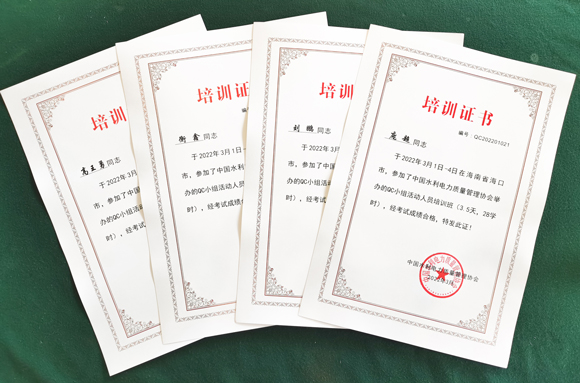 日前,公司組織青年員工參加由中國水利電力質(zhì)量管理協(xié)會舉辦的2022年質(zhì)量管理小組活動人員培訓(xùn),并順利獲取合格證書。