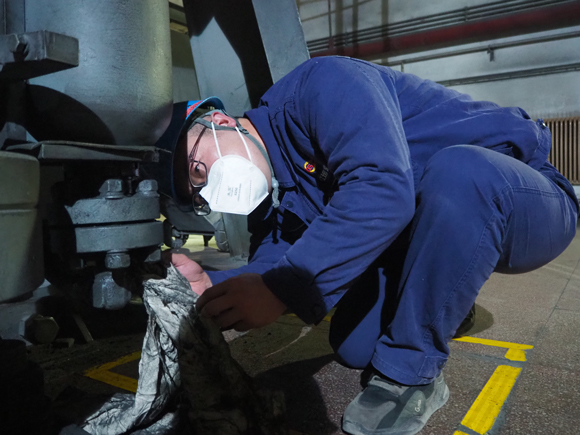 在檢修現(xiàn)場(chǎng),各種管道“叢林”、大大小小的設(shè)備中,點(diǎn)綴著反光條的“運(yùn)營(yíng)熒光藍(lán)”隨處可見。各班組深入貫徹落實(shí)公司“質(zhì)量提升年”要求,深化設(shè)備精細(xì)化管理,做到每個(gè)環(huán)節(jié)“回頭看”確保質(zhì)量,班后做好工作面的現(xiàn)場(chǎng)清理確保整潔。