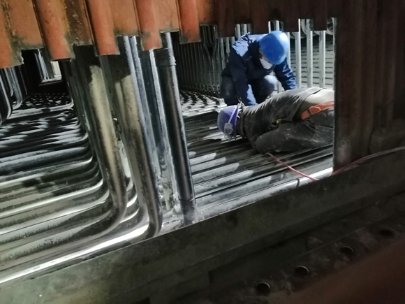 為保證主線工作尤其是受熱面泄漏搶修工作按期保質(zhì)完成,項(xiàng)目部周密部署、精心組織,緊扣時(shí)間節(jié)點(diǎn)分解細(xì)化任務(wù),根據(jù)爐膛泄漏部位特點(diǎn)制定詳細(xì)的搶修技術(shù)措施和安全措施,并要求鍋爐專業(yè)將人員進(jìn)行合理分配,做好交接班記錄,保證搶修工作不因交接班出現(xiàn)紕漏。項(xiàng)目部負(fù)責(zé)人鉆進(jìn)爐膛,實(shí)地查看泄漏部位、泄漏面積,詳細(xì)統(tǒng)計(jì)泄漏管子數(shù)量及材質(zhì)。