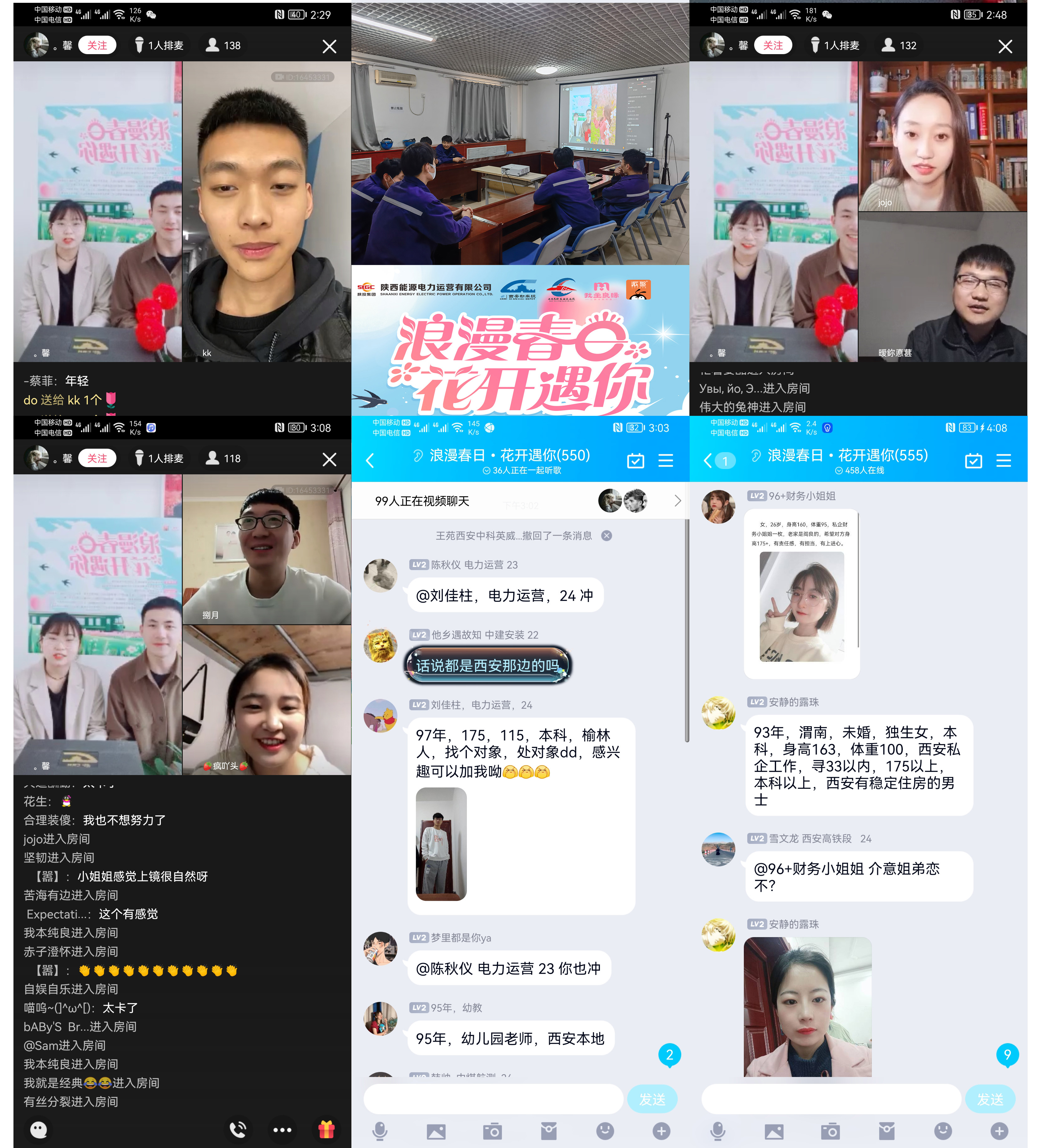 3月19日,電力運營公司團委聯(lián)合中鐵局西安動車段團委和基礎(chǔ)設(shè)施段團委開展了“浪漫春日·花開遇你”線上聯(lián)誼交友活動,幫助單身青年職工拓寬交友渠道,搭建良好交流平臺。活動邀請了陜西省科技廳、中科院光機所、集團系統(tǒng)單位人民大廈、清水川能源等20余家企事業(yè)單位共550余名單身青年參加。