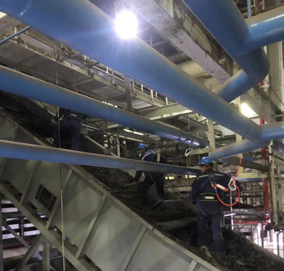 4月7日,吉木薩爾發(fā)電#1爐撈渣機(jī)堆積大量焦渣,嚴(yán)重威脅機(jī)組安全運(yùn)行。吉木薩爾項(xiàng)目部立即組織調(diào)配其他班組成員進(jìn)行支援,歷經(jīng)3個(gè)小時(shí)奮戰(zhàn),用鐵锨、耙子等工具清理焦渣。現(xiàn)場雖“煙霧繚繞”,但清焦工作井然有序,經(jīng)過加班加點(diǎn),第一時(shí)間將撈渣機(jī)內(nèi)堆積的焦渣全部清理至渣倉。通過此次應(yīng)急搶修,為1#機(jī)組安全穩(wěn)定運(yùn)行提供了有力保障。
