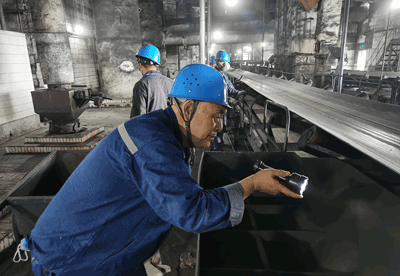 從#1、#2、#3、#4皮帶,一路巡檢到65米高的#5皮帶。黑暗的空間里,張炳立一路不語,不時用手電筒在皮帶上照照,聽音棒在軸承座聽聽,測溫儀在電機上量量,時而又掏出筆記本在上面記記。