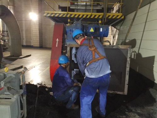 因受近期市場(chǎng)不利因素影響,煤炭質(zhì)量較差,導(dǎo)致除灰系統(tǒng)管道、閥門(mén)故障頻頻,鍋爐制粉系統(tǒng)缺陷接連不斷,設(shè)備搶修、維護(hù)工作量激增。6月22日晚上8點(diǎn),因煤質(zhì)原因?qū)е?4爐甲、乙給煤機(jī)及磨煤機(jī)入口管道煤粉堵塞達(dá)5米之長(zhǎng),嚴(yán)重威脅設(shè)備安全運(yùn)行,消除隱患迫在眉睫。面對(duì)嚴(yán)峻挑戰(zhàn),項(xiàng)目部快速響應(yīng),立即集結(jié)管理干部和班組支援人員趕赴現(xiàn)場(chǎng),和制粉班員工并肩作戰(zhàn)。