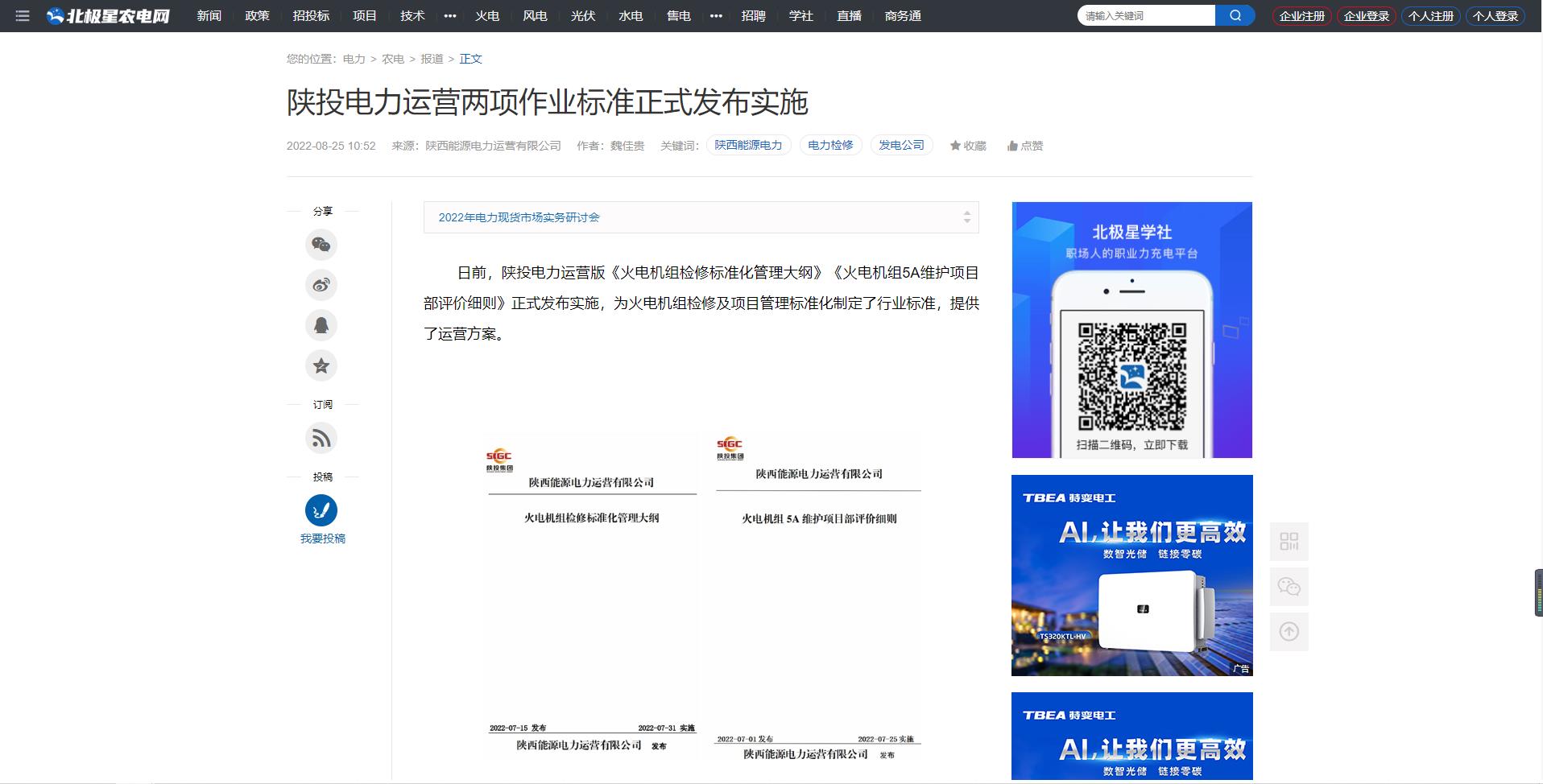 日前,陜投電力運營版《火電機組檢修標準化管理大綱》《火電機組5A維護項目部評價細則》正式發(fā)布實施,為火電機組檢修及項目管理標準化制定了行業(yè)標準,提供了運營方案。