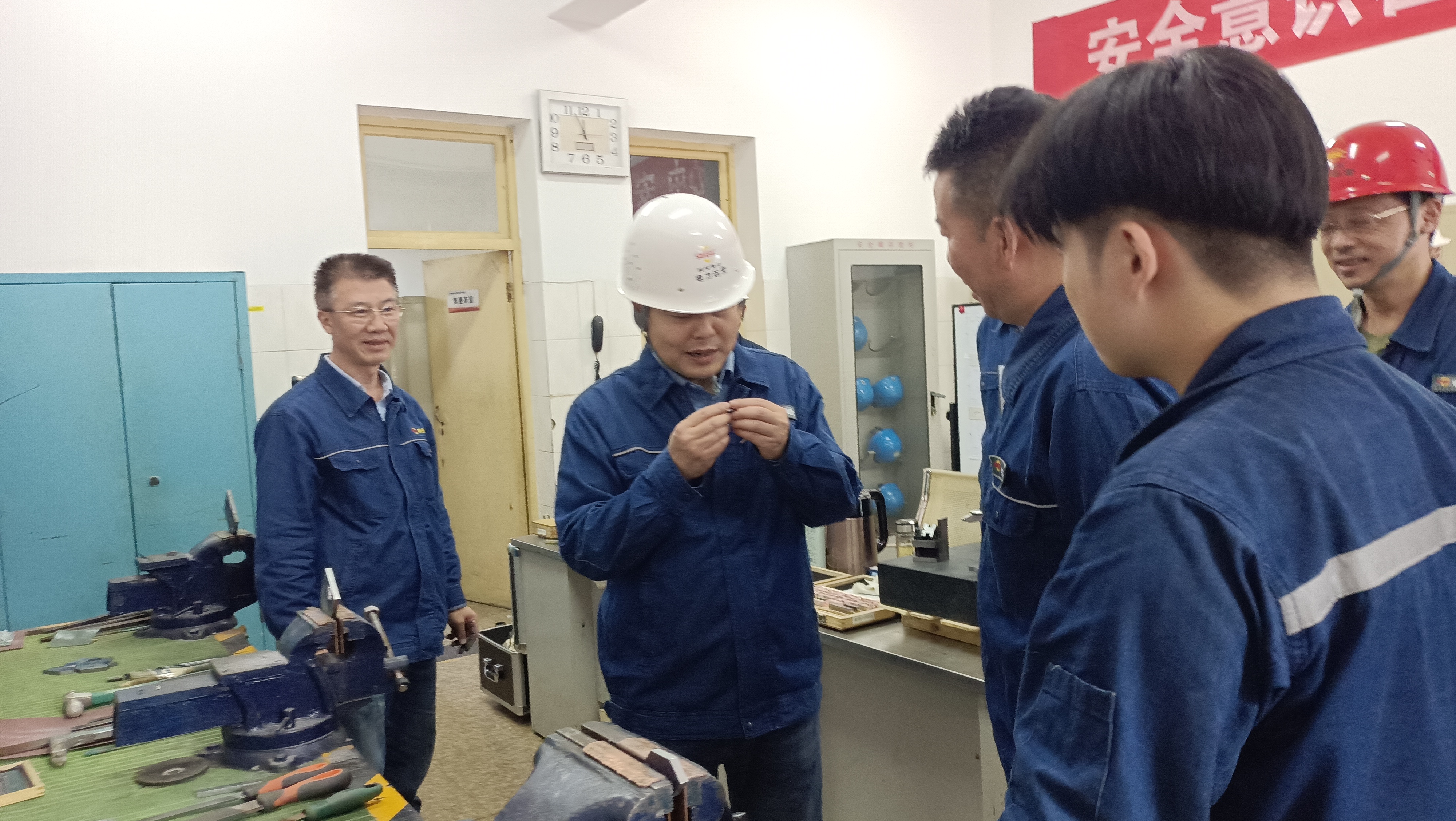 在#3機(jī)乙小機(jī)大修現(xiàn)場(chǎng),毛冬紅向參與檢修的青工詳細(xì)詢問(wèn)設(shè)備解體情況及測(cè)量?jī)x器的使用要點(diǎn),希望他們能以檢修現(xiàn)場(chǎng)為課堂,提升專業(yè)技能,練就過(guò)硬本領(lǐng)。在磨煤機(jī)鋼甲更換和吸風(fēng)機(jī)檢修作業(yè)現(xiàn)場(chǎng),他要求工作負(fù)責(zé)人和工作班成員嚴(yán)格遵守檢修規(guī)程、認(rèn)真執(zhí)行檢修作業(yè)標(biāo)準(zhǔn)化,提高檢修質(zhì)量,并叮囑大家牢記安全要求。在燃輸機(jī)修班皮帶更換工作場(chǎng)所,他詳細(xì)了解了皮帶粘接檢修工藝,并對(duì)跟班實(shí)習(xí)的黃陵店頭電廠項(xiàng)目部青工寄予厚望,要求他們珍惜這次設(shè)備檢修的難得機(jī)會(huì),熟悉燃輸系統(tǒng)及設(shè)備內(nèi)部構(gòu)造,虛心學(xué)習(xí)、錘煉本領(lǐng),不斷提高技能水平。