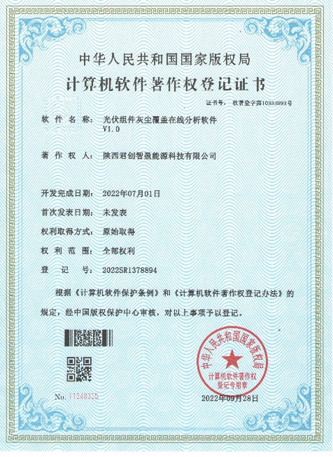 日前,由君創(chuàng)科技牽頭研發(fā)的“光伏組件灰塵覆蓋損耗在線分析系統(tǒng)及自動清洗系統(tǒng)產(chǎn)品”獲得國家版權(quán)局授權(quán)的計算機軟件著作權(quán)登記證書,填補了公司在新能源智慧化自主研發(fā)領(lǐng)域的空白。