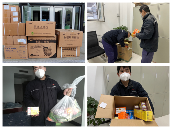 各黨支部想方設(shè)法緊急籌措N95口罩、退燒藥品、抗原試劑、消毒液等物資,發(fā)放到全體員工手中,為全員安全健康增添“防護網(wǎng)”。對確定陽性人員及出現(xiàn)發(fā)熱癥狀的職工按照管控要求進行隔離,建立人員統(tǒng)計手冊,安排專人送藥送餐,定時溝通做好信息反饋,隨時關(guān)注員工身心狀況。通過工作群、微信等渠道宣傳防疫指南,提供“面對面”的云端服務(wù),讓員工安心做好個人防疫。水果、紅糖水、檸檬茶……“最暖健康套餐”讓員工在特殊時期心里有歸屬、口中有營養(yǎng)。部分緊缺防疫物資,由經(jīng)營管理部多方協(xié)調(diào)一并采購,目前已通過快遞發(fā)往各項目部,為一線生產(chǎn)人員助一臂之力。