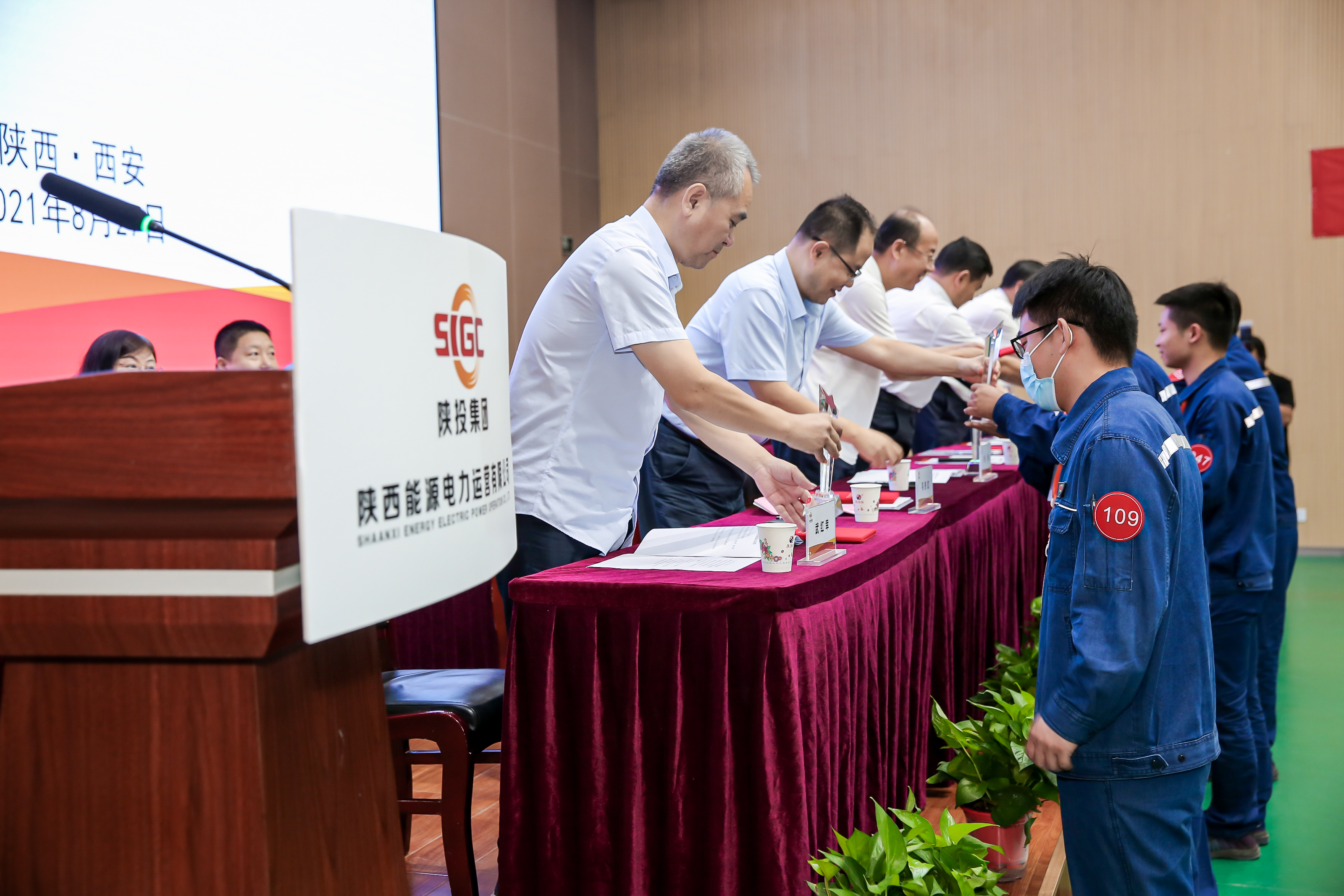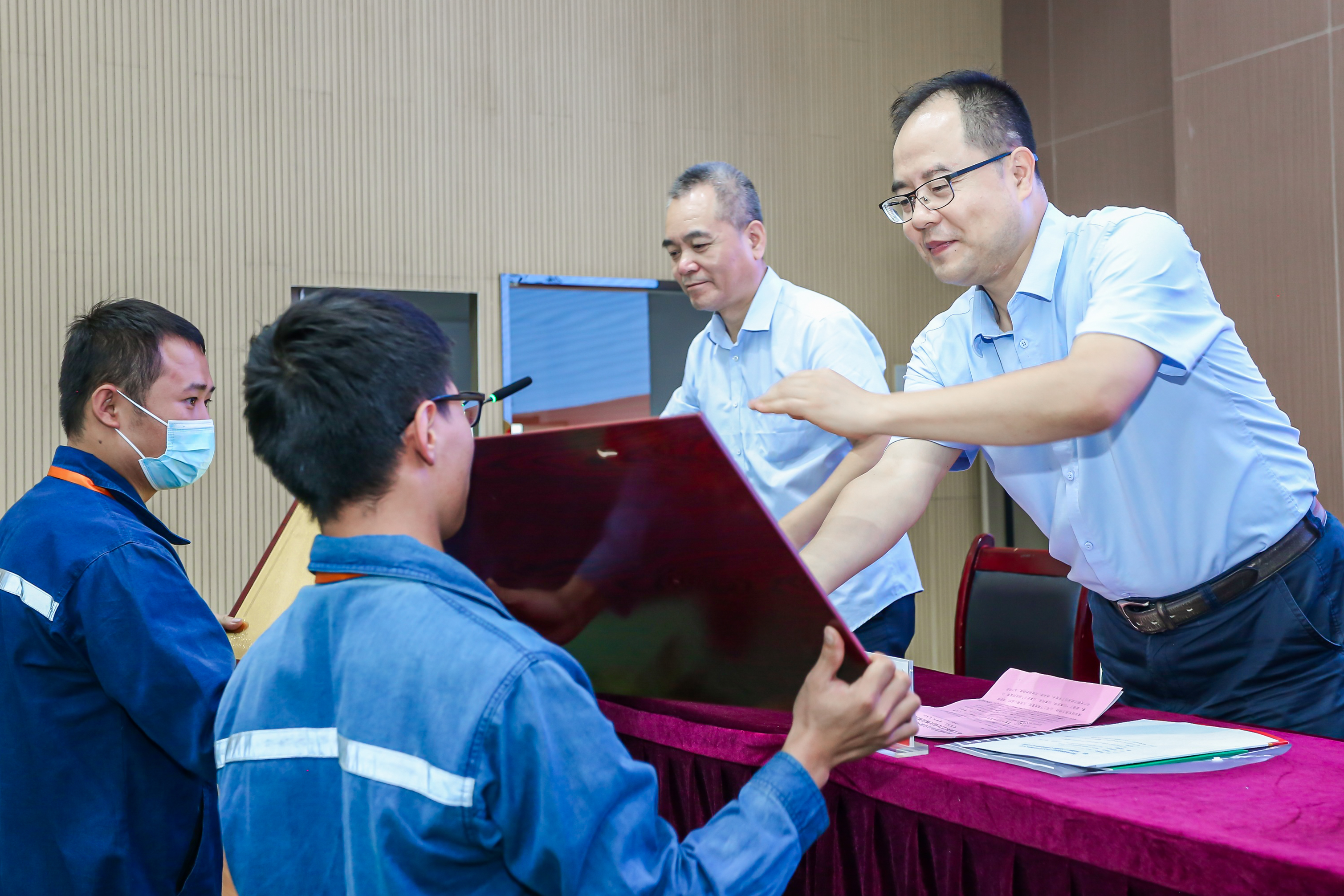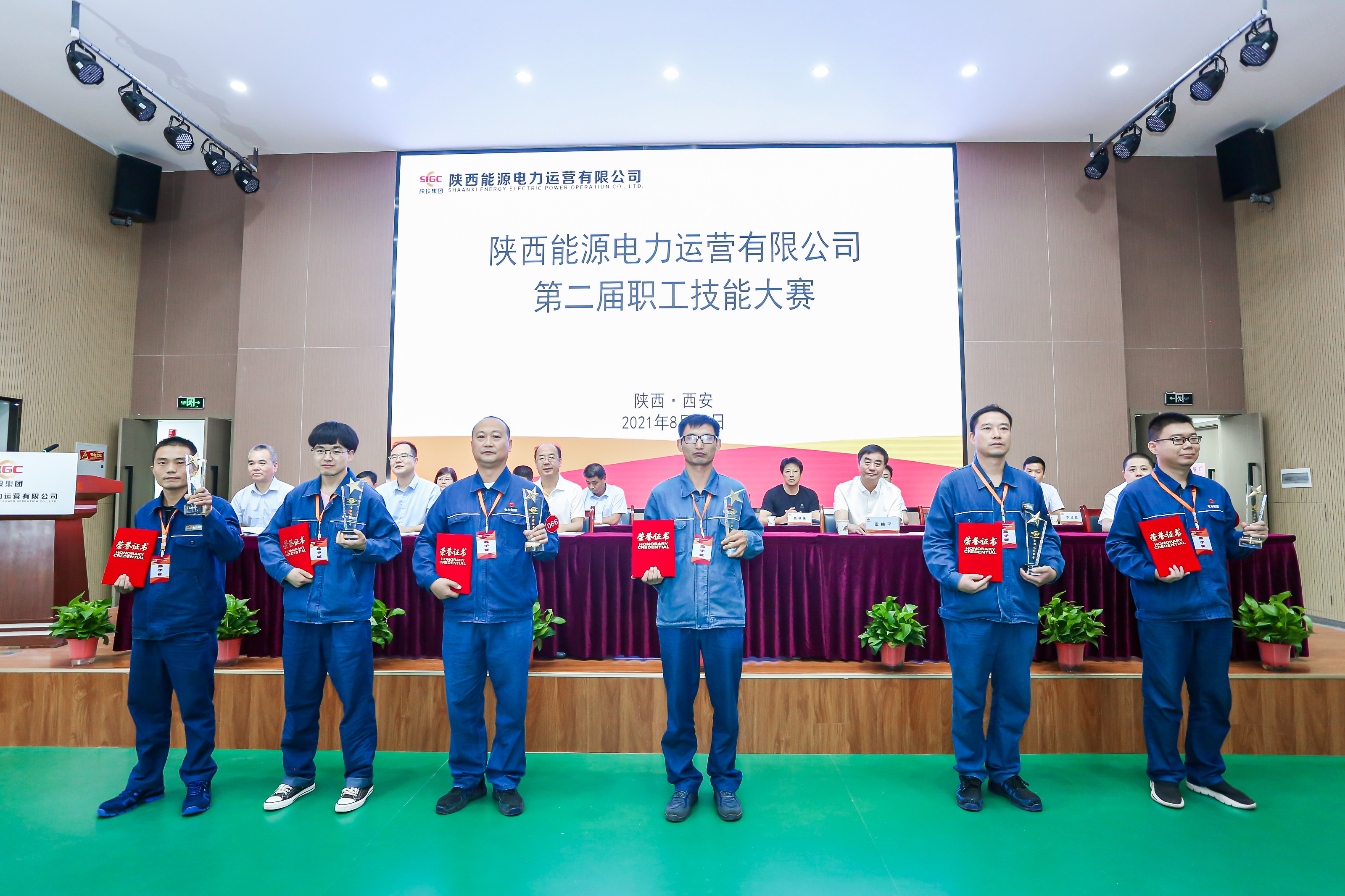 在熱烈的掌聲中,獲獎(jiǎng)選手依次登臺(tái)領(lǐng)獎(jiǎng)。參會(huì)領(lǐng)導(dǎo)分別為獲獎(jiǎng)選手和項(xiàng)目部頒發(fā)了證書、獎(jiǎng)杯和獎(jiǎng)牌。獲得個(gè)人獎(jiǎng)項(xiàng)的選手分別被授予了“金牌技術(shù)能手”“銀牌技術(shù)能手”和“銅牌技術(shù)能手”榮譽(yù)稱號(hào)。