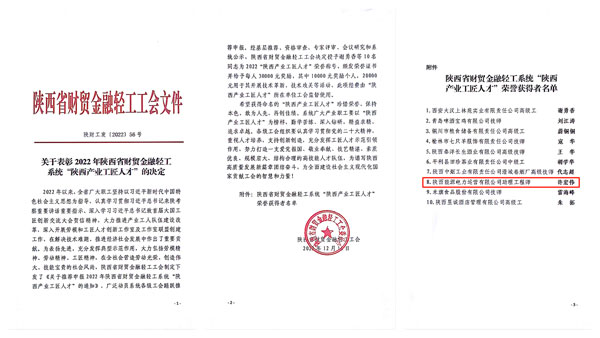 “陜西產(chǎn)業(yè)工匠人才”評(píng)選旨在弘揚(yáng)勞模精神、勞動(dòng)精神、工匠精神,表彰優(yōu)秀工匠人才。2022年,共有10名同志被陜西省財(cái)貿(mào)金融輕工工會(huì)授予“陜西產(chǎn)業(yè)工匠人才”稱號(hào),頒發(fā)榮譽(yù)證書(shū)并給予每人30000元獎(jiǎng)勵(lì),其中10000元獎(jiǎng)勵(lì)個(gè)人,20000元用于其開(kāi)展技術(shù)革新、技術(shù)攻關(guān)等活動(dòng)。