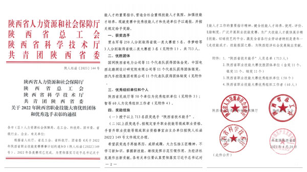日前,陜西省人力資源和社會(huì)保障廳、陜西省總工會(huì)、陜西省科學(xué)技術(shù)廳以及共青團(tuán)陜西省委,對(duì)2022年陜西省職業(yè)技能大賽優(yōu)勝團(tuán)體和優(yōu)秀選手進(jìn)行通報(bào)表彰,公司馬鵬飛、許宏偉、王振華、楊健、雷震等5名參賽選手被授予“陜西省技術(shù)能手”榮譽(yù)稱號(hào)。