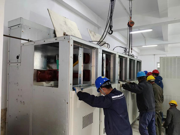 保運最重要,寒風何所懼。時間一分一秒地過去,不知不覺已是傍晚時分,檢修工作也進入最關(guān)鍵的時刻。6KV輸煤段配電柜吊裝前,檢修小組做了充足的準備,但即便如此,吊裝過程中小組成員還是慎之又慎,不斷相互提醒,一絲一毫地移動著配電柜,生怕稍有不慎造成損壞。配電柜終于吊裝成功,大家長舒一口氣,緊皺的眉頭也舒展開來。地基處理完成后,工作人員第一時間完成配電柜安裝,按時按點、保質(zhì)保量完成了廠外6KV輸煤段配電柜沉降檢修工作。