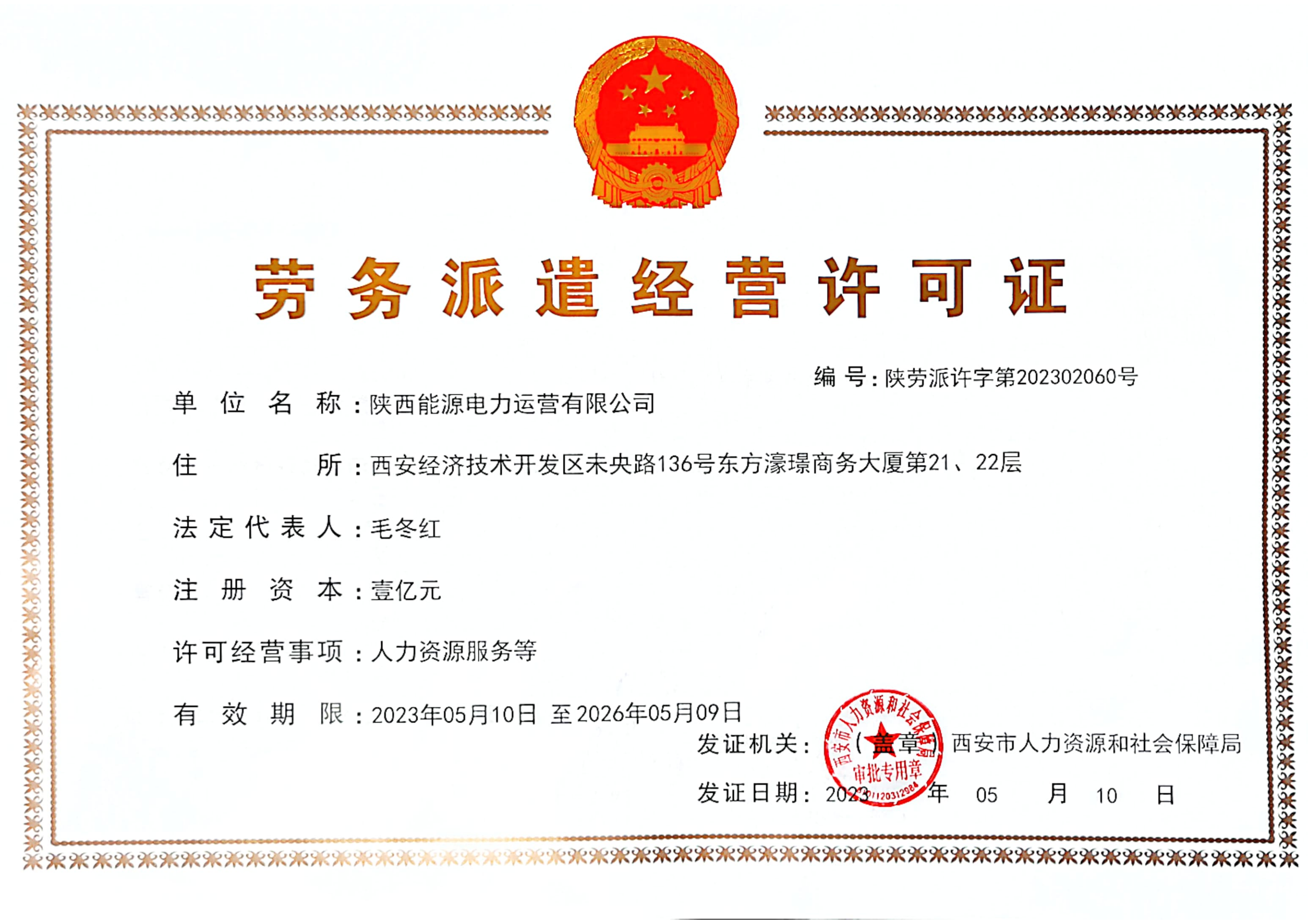 5月10日,公司順利通過(guò)西安市人力資源和社會(huì)保障局評(píng)審,獲得《勞務(wù)派遣經(jīng)營(yíng)許可證》,標(biāo)志著公司人力資源支撐和服務(wù)能力邁上了新臺(tái)階。