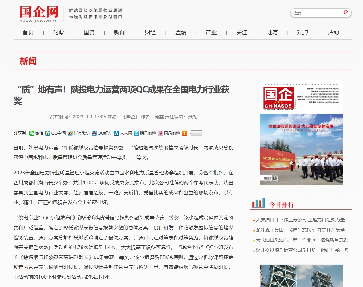 2023年全國電力行業(yè)質(zhì)量管理小組交流活動由中國水利電力質(zhì)量管理協(xié)會組織開展,分四個批次,在四川成都和湖南長沙舉辦,共計1300余項優(yōu)秀成果交流發(fā)布。此次公司推薦的兩個參賽代表隊,從省賽再到全國電力行業(yè)大賽,經(jīng)過層層選拔,一路過關(guān)斬將,憑借扎實的成果和出色的現(xiàn)場發(fā)布,以專業(yè)、精準(zhǔn)、嚴(yán)謹(jǐn)?shù)娘L(fēng)貌在發(fā)布會上斬獲佳績。