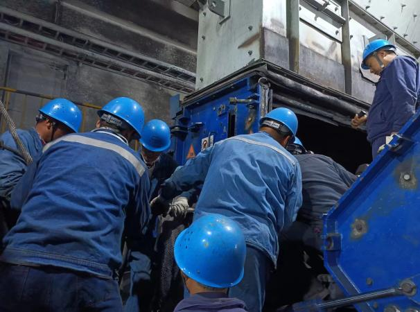 搶修方案確定后,兩組人員接續(xù)戰(zhàn)斗,展開搶修。在轟鳴的機(jī)器聲中,在粉塵彌漫的細(xì)碎煤機(jī)室內(nèi),大家搶時(shí)間、爭(zhēng)進(jìn)度,經(jīng)過42小時(shí)鏖戰(zhàn),于12日凌晨5時(shí)許結(jié)束搶修,共完成20枚錘臂的拆除、回裝及9枚錘頭更換工作。