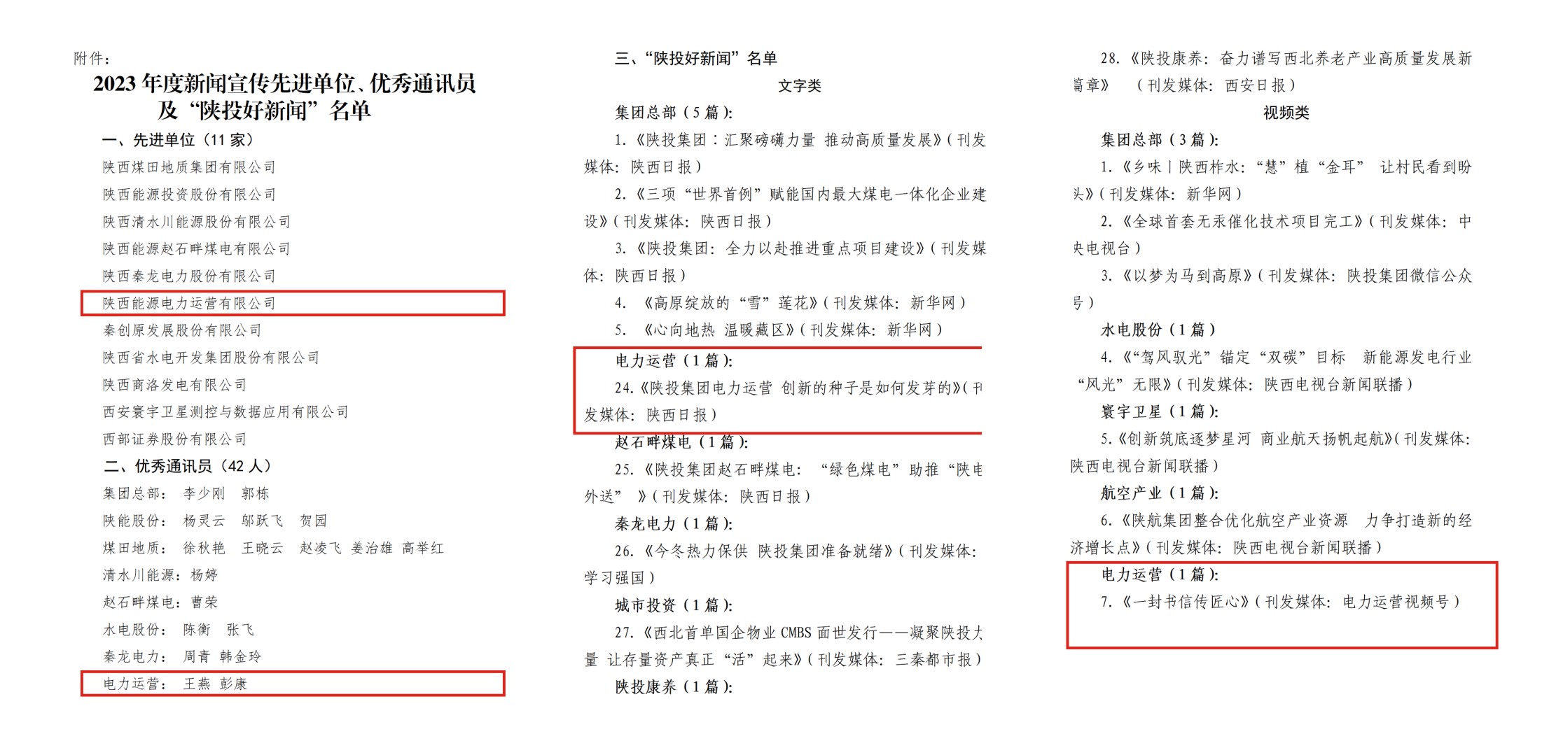 近日,公司榮獲集團(tuán)公司2023年度“新聞宣傳工作先進(jìn)單位”稱號(hào),連續(xù)五年獲此殊榮。公司拍攝的視頻《一封書信傳匠心》、稿件《陜投集團(tuán)電力運(yùn)營 創(chuàng)新的種子是如何發(fā)芽的》分獲“陜投好新聞”。