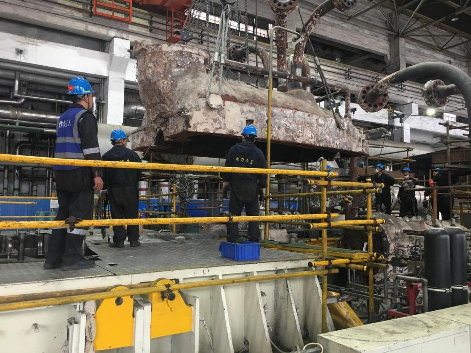 “請將您的手機、鑰匙等物品放進儲存袋,再次確認(rèn)沒有攜帶其它物品,方可上缸工作?!痹谄麢C本體檢修上缸入口處,專職值班人員正在進行二次檢查登記,杜絕一切安全隱患。