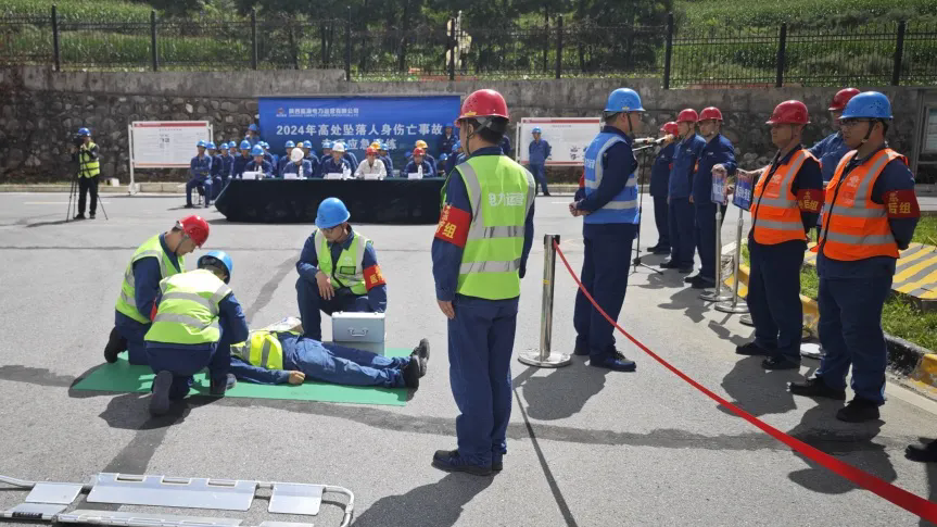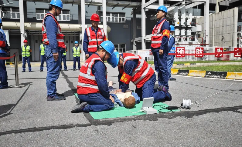 本次演練突出“實景、實員、實地、實戰(zhàn)”,結(jié)合電力檢維修作業(yè)中人身事故占比最高的高處墜落,實景模擬作業(yè)人員攀爬腳手架時發(fā)生墜落,導(dǎo)致人員骨折、外傷以及呼吸心跳停止等復(fù)雜情況進行應(yīng)急救援。