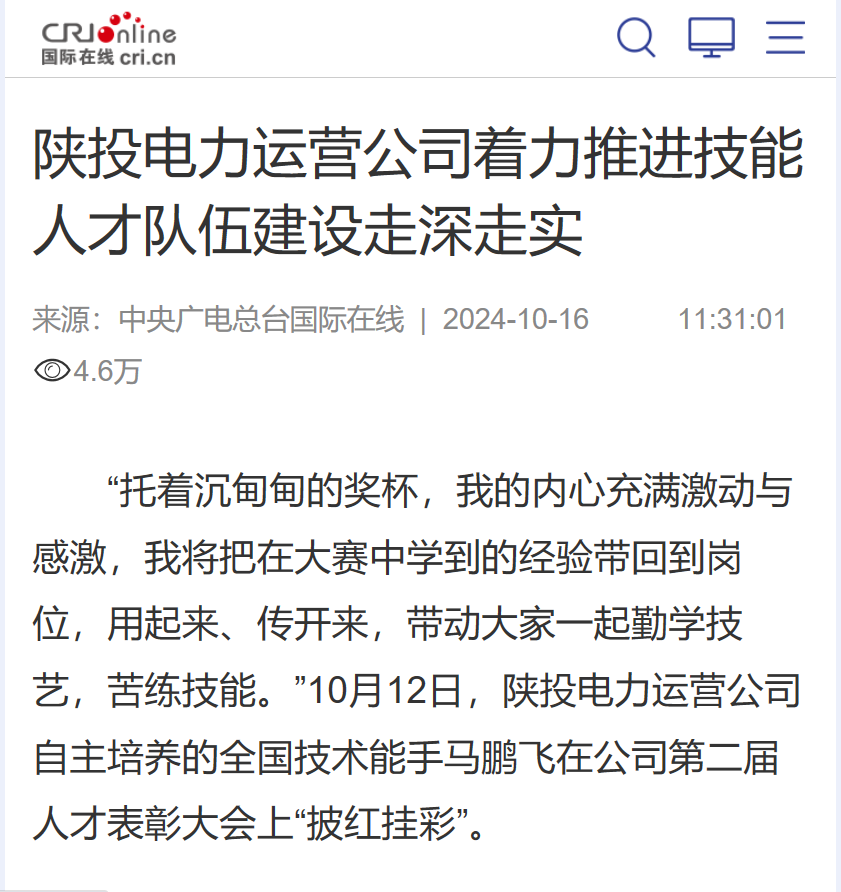 “托著沉甸甸的獎(jiǎng)杯,我的內(nèi)心充滿激動(dòng)與感激,我將把在大賽中學(xué)到的經(jīng)驗(yàn)帶回到崗位,用起來、傳開來,帶動(dòng)大家一起勤學(xué)技藝,苦練技能。”10月12日,陜投電力運(yùn)營自主培養(yǎng)的全國技術(shù)能手馬鵬飛在公司第二屆人才表彰大會上“披紅掛彩”。