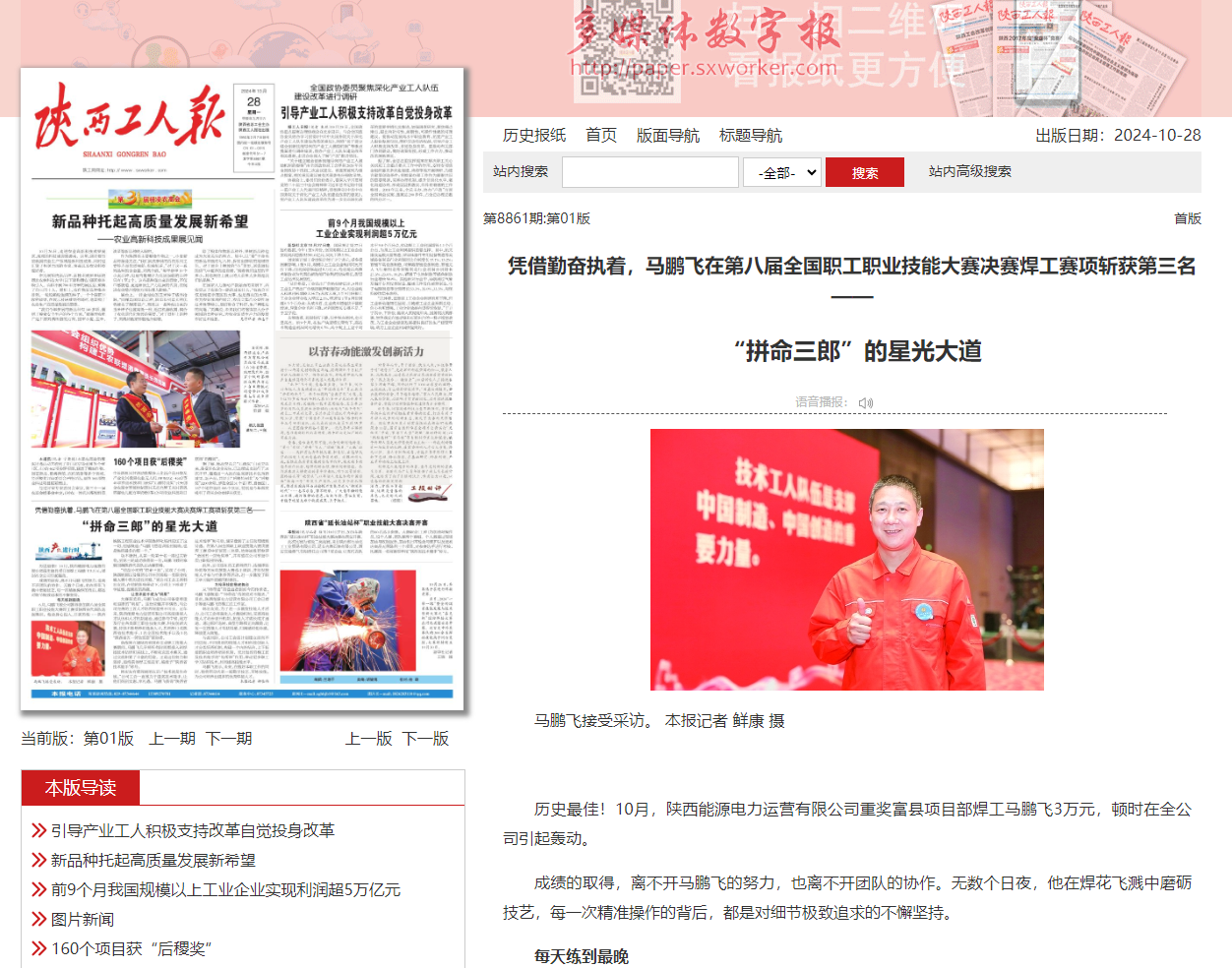 備戰(zhàn)第五屆陜西省國(guó)有企業(yè)職工技能大賽期間,馬鵬飛幾乎將所有時(shí)間都投入到焊接技術(shù)鉆研和實(shí)踐上,不斷攻克技術(shù)難關(guān),通過實(shí)戰(zhàn)積累了豐富的經(jīng)驗(yàn)。正是這份努力和堅(jiān)持,最終獲得焊工組亞軍,被授予“陜西省技術(shù)能手”稱號(hào)。