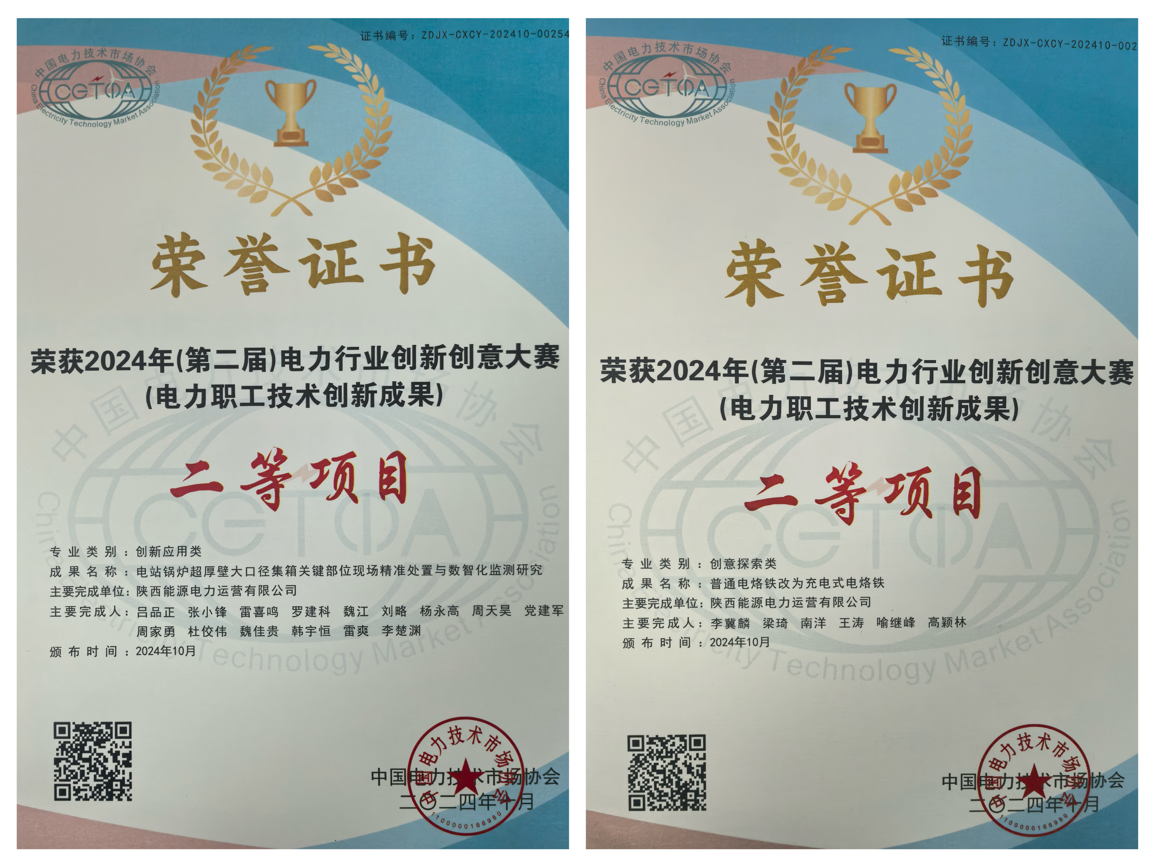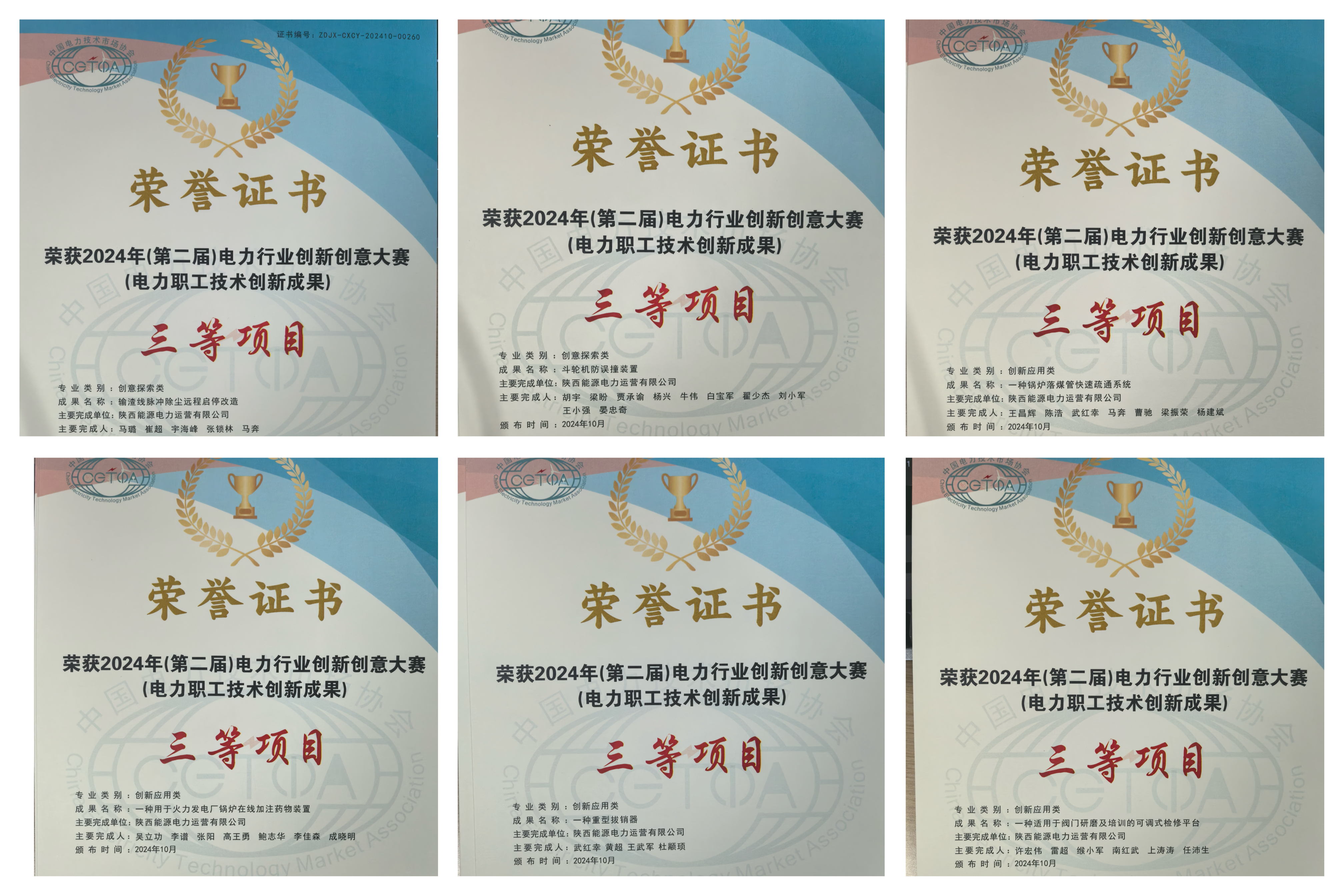 日前,中國電力技術(shù)市場(chǎng)協(xié)會(huì)2024年(第二屆)電力行業(yè)創(chuàng)新創(chuàng)意大賽成功舉辦,公司兩個(gè)成果分獲創(chuàng)新應(yīng)用類和創(chuàng)意探索類二等項(xiàng)目,六個(gè)成果獲評(píng)三等項(xiàng)目。
