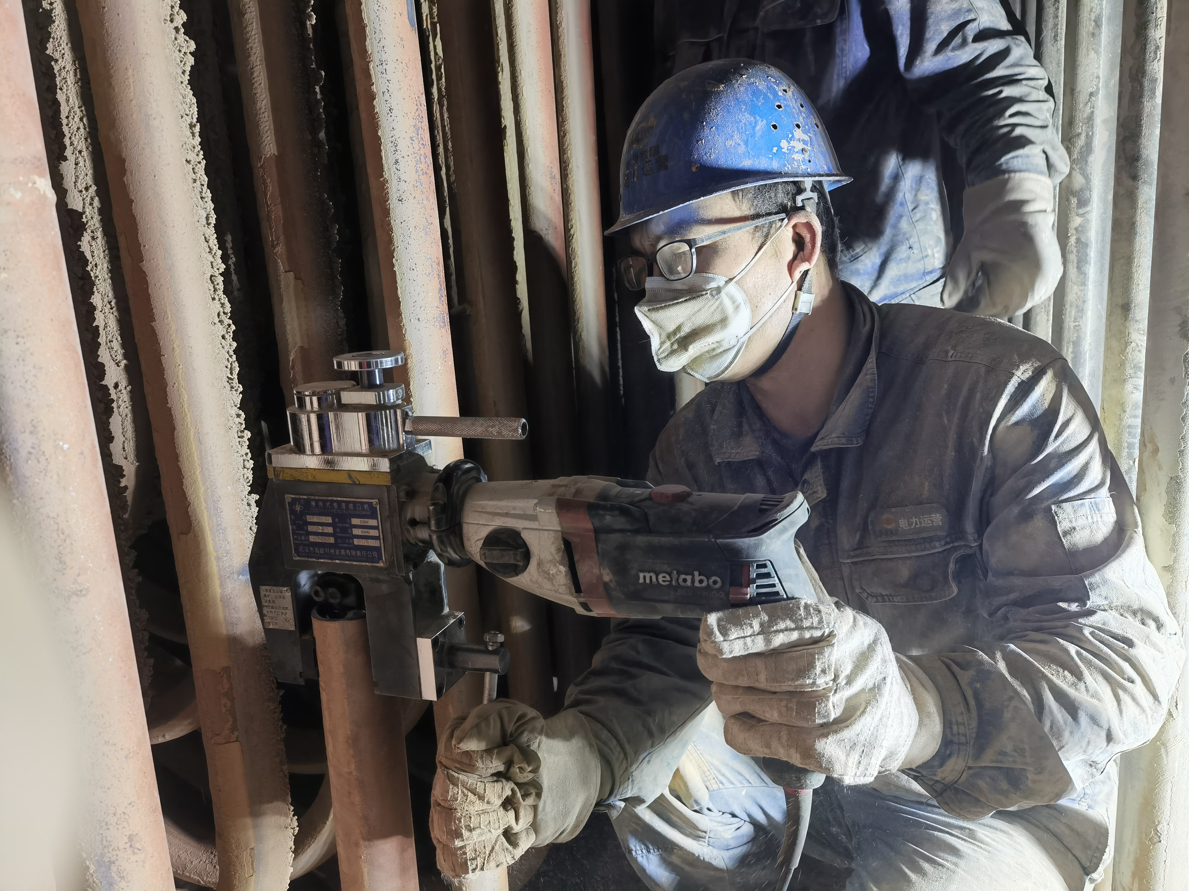 “此次檢修要檢查水冷壁四面和爐外主蒸汽測點割管,僅#5爐檢查焊補打磨點就有600多個,堅決要把好W、H點的驗收關,現(xiàn)場驗收、現(xiàn)場簽字,做到一項都不能少,保證不掉鏈子?!闭劦劫|(zhì)量,正在進行鍋爐大罩殼大管徑管道、三通焊縫磁粉檢測的鍋爐專業(yè)專工劉宏感觸頗深。