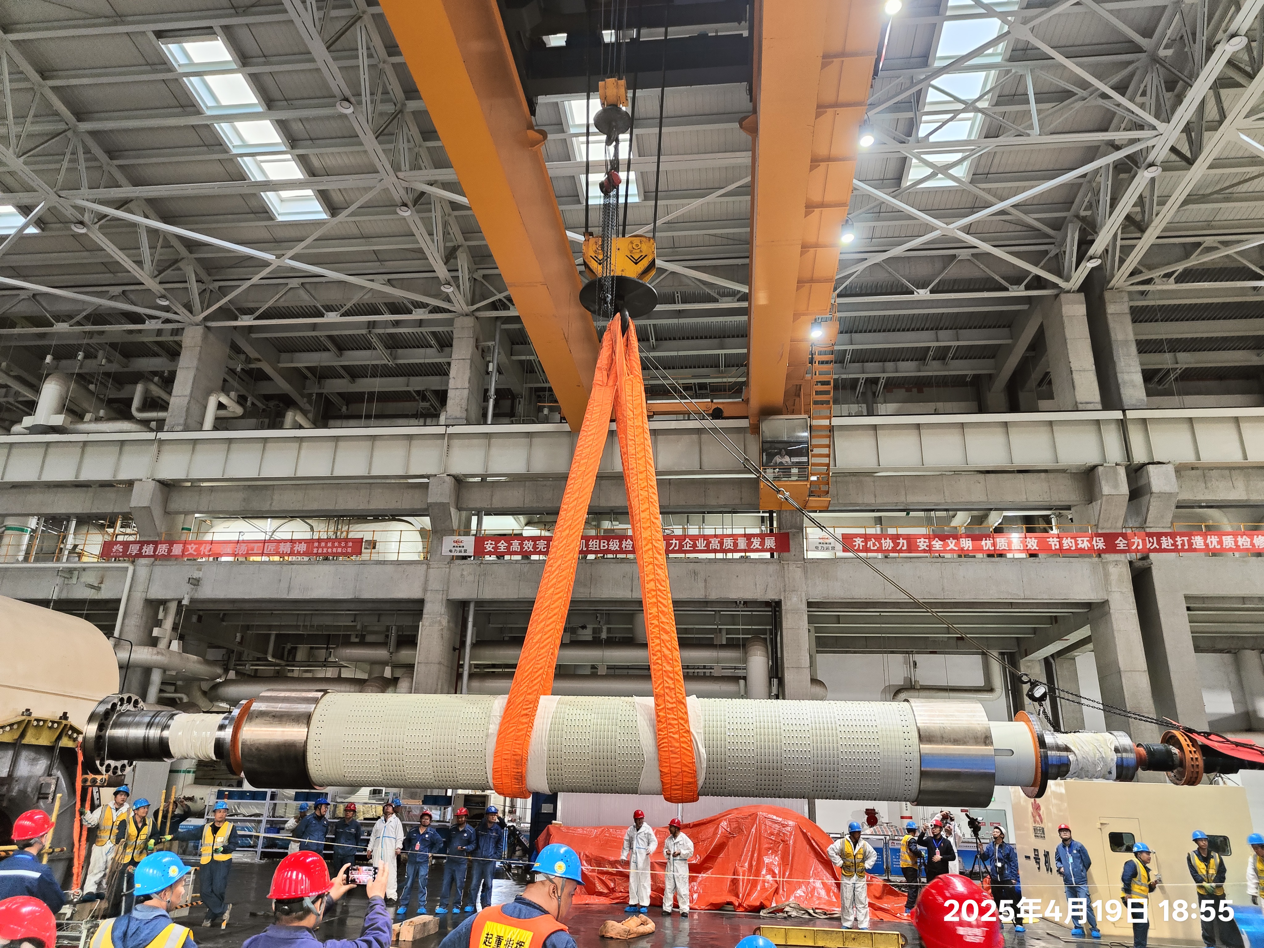 19時15分,暮色漸濃,經(jīng)過近11個小時連續(xù)奮戰(zhàn),重104噸,全長15.7米的發(fā)電機轉(zhuǎn)子完美移出定子內(nèi)膛,平穩(wěn)落位于專用支架。這一刻,現(xiàn)場響起經(jīng)久不息的掌聲。