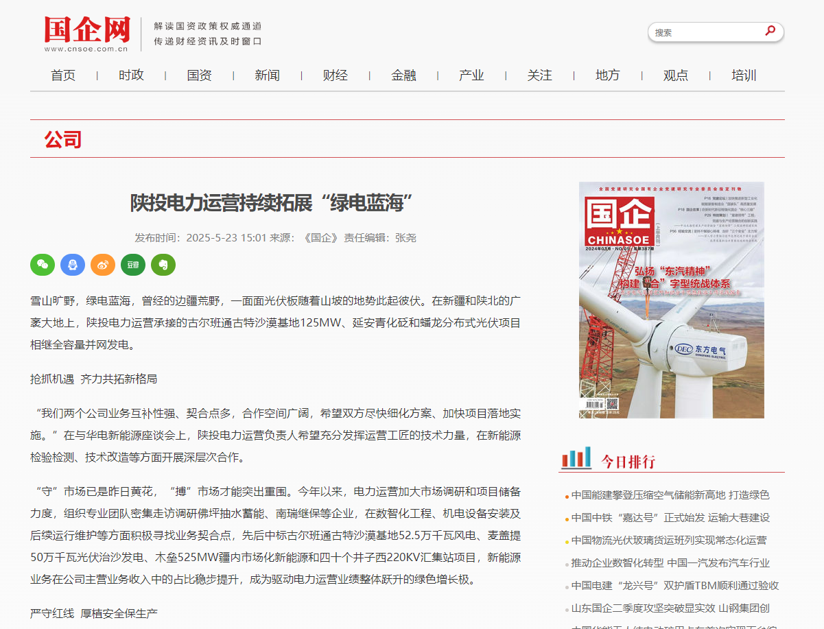 “守”市場(chǎng)已是昨日黃花,“搏”市場(chǎng)才能突出重圍。今年以來(lái),電力運(yùn)營(yíng)加大市場(chǎng)調(diào)研和項(xiàng)目?jī)?chǔ)備力度,組織專業(yè)團(tuán)隊(duì)密集走訪調(diào)研佛坪抽水蓄能、南瑞繼保等企業(yè),在數(shù)智化工程、機(jī)電設(shè)備安裝及后續(xù)運(yùn)行維護(hù)等方面積極尋找業(yè)務(wù)契合點(diǎn),先后中標(biāo)古爾班通古特沙漠基地52.5萬(wàn)千瓦風(fēng)電、麥蓋提50萬(wàn)千瓦光伏治沙發(fā)電、木壘525MW疆內(nèi)市場(chǎng)化新能源和四十個(gè)井子西220KV匯集站項(xiàng)目,新能源業(yè)務(wù)在公司主營(yíng)業(yè)務(wù)收入中的占比穩(wěn)步提升,成為驅(qū)動(dòng)電力運(yùn)營(yíng)業(yè)績(jī)整體躍升的綠色增長(zhǎng)極。