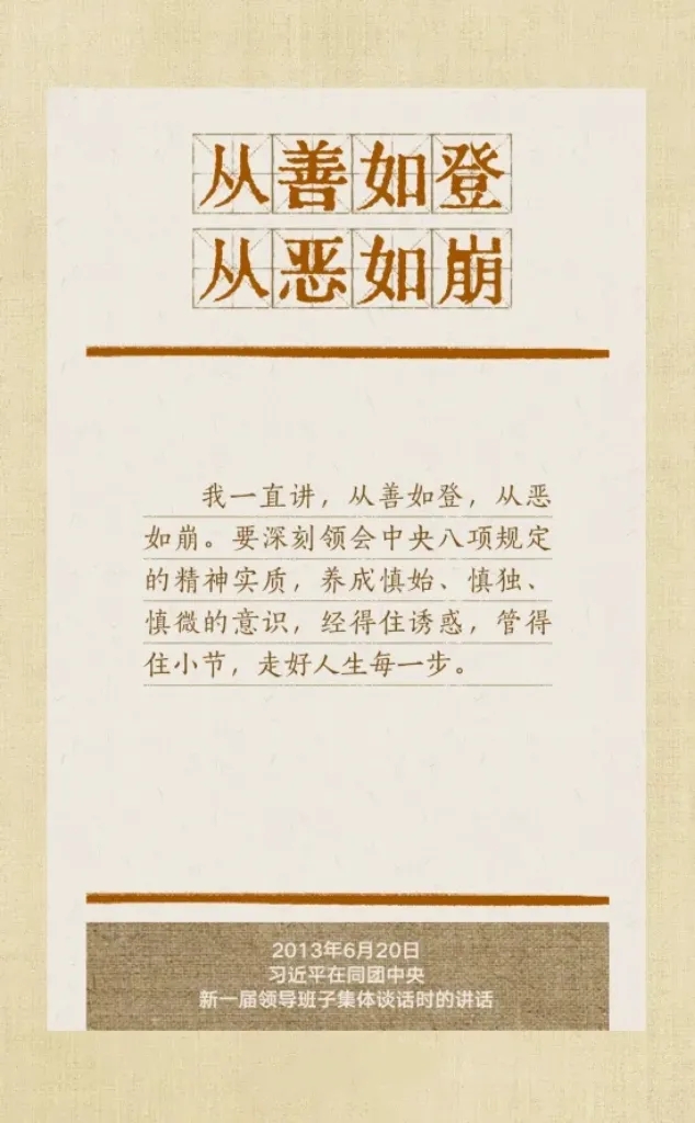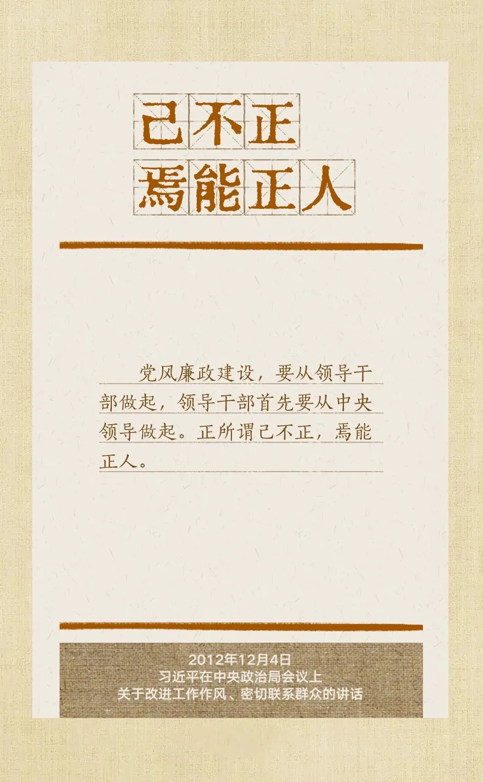 黨的十八大以來(lái),習(xí)近平總書(shū)記多次就抓好黨的作風(fēng)建設(shè)、貫徹落實(shí)中央八項(xiàng)規(guī)定精神發(fā)表重要講話,作出重要批示,提出明確要求。“沒(méi)有規(guī)矩,不成方圓”、“己不正,焉能正人”、“盡小者大,慎微者著”······總書(shū)記引用的這些古語(yǔ)耐人尋味。