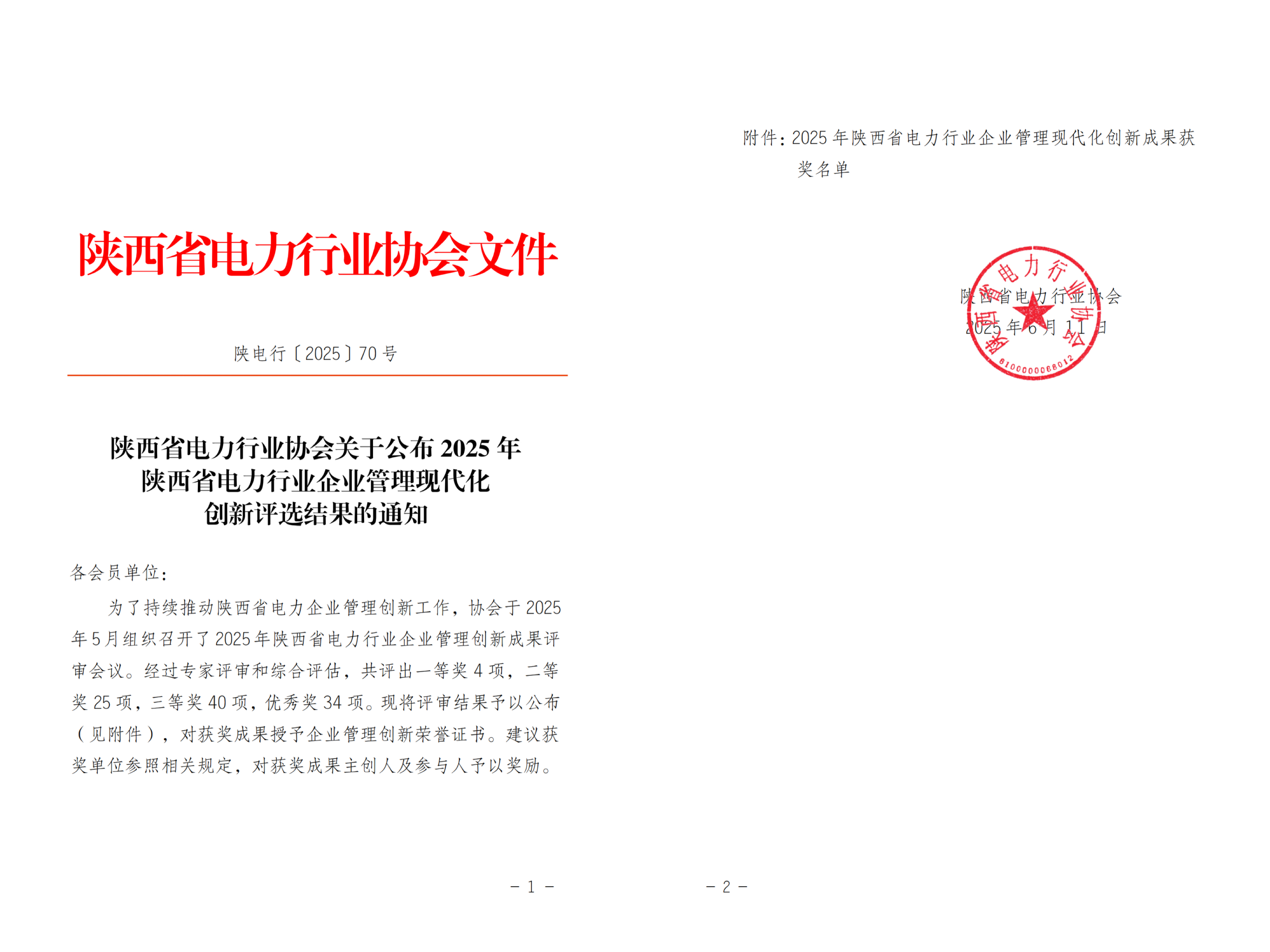 日前,陜西省電力行業(yè)協(xié)會(huì)公布2025年企業(yè)管理現(xiàn)代化創(chuàng)新評(píng)選結(jié)果,公司《電力檢修企業(yè)高技能人才培養(yǎng)路徑研究與實(shí)踐》獲三等獎(jiǎng),《基于AI大模型的電力檢修企業(yè)“戰(zhàn)略+業(yè)務(wù)”數(shù)智化轉(zhuǎn)型管理創(chuàng)新實(shí)踐》等4項(xiàng)成果獲優(yōu)秀獎(jiǎng)。