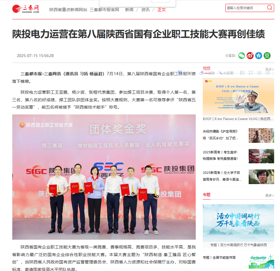 7月14日,第八屆陜西省國有企業(yè)職工技能大賽落下帷幕。陜投電力運(yùn)營職工王亞鵬、楊少波、張程代表集團(tuán),參加焊工項(xiàng)目決賽,取得個人第一名、第三名、第八名的好成績,焊工團(tuán)隊(duì)獲團(tuán)體金獎。按照大賽規(guī)則,大賽第一名可推薦參評“陜西省五一勞動獎?wù)隆保拔迕麑⒈皇谟琛瓣兾魇〖夹g(shù)能手”稱號。