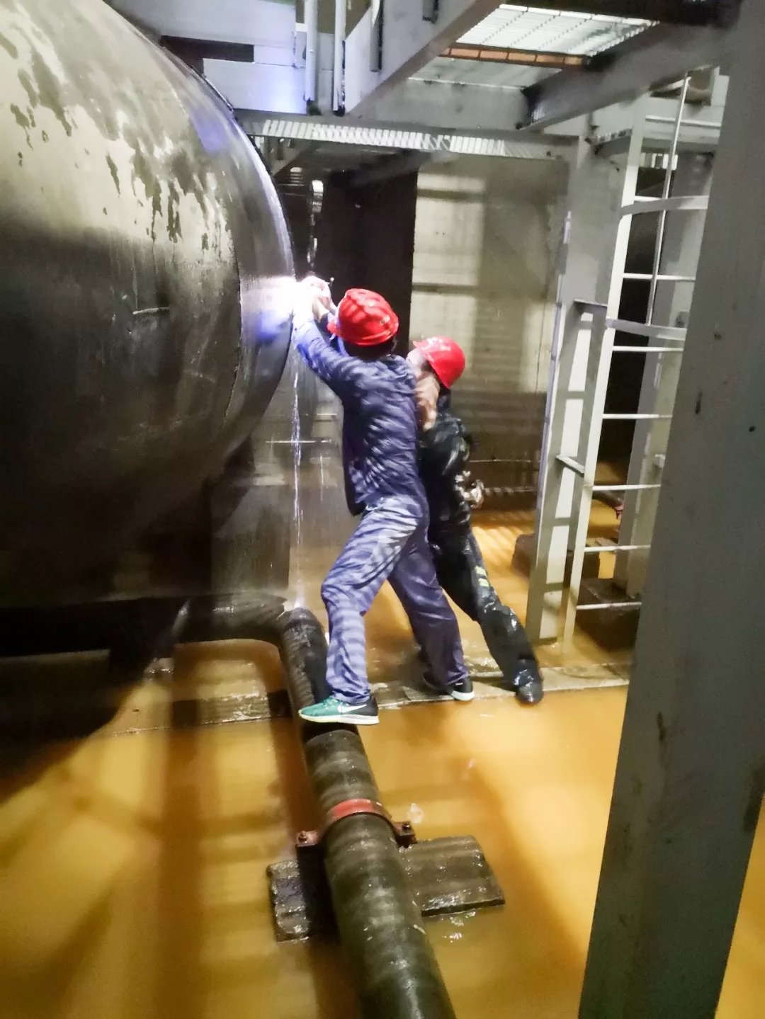 當(dāng)晚19點20分,#1機凝汽器循環(huán)水A側(cè)進水管熱工溫度計插管突然斷裂,大量循環(huán)水噴涌而出,危及到#1機組安全運行,情況十分緊急。張兵再次趕赴現(xiàn)場,查明原因后立即組織人員增援,指揮加裝潛水泵,防止事態(tài)擴大。