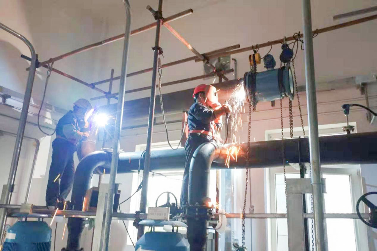 隨著供熱季的臨近,麟電供熱管網(wǎng)的沖洗工作迫在眉睫,但由于疏干水提升泵出口流量計出現(xiàn)故障,嚴重影響了工作的進行。機務汽化水班接到任務后,立即協(xié)同綜合班合理安排工序,協(xié)調(diào)各工種緊密配合,全體人員克服工期緊、任務重等困難,經(jīng)過連續(xù)20個小時的晝夜奮戰(zhàn),保質(zhì)保量完成了此次搶修工作。