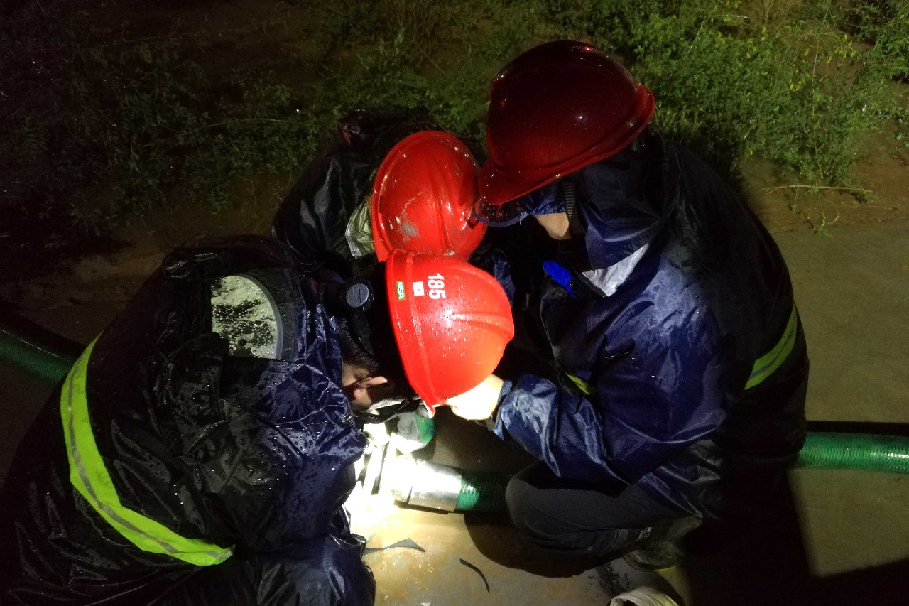9月12日,瓢潑大雨下了整整一天,晚上21時(shí)許趙石畔煤電生活污水池水位突然急劇升高,且已超過警戒水位,機(jī)務(wù)二隊(duì)立刻組織人員投入搶修工作。陣陣寒風(fēng)里,大雨如注,雨水順著搶修人員的衣領(lǐng)直往脖子里灌,但大家沒有一個(gè)人臨陣退縮,一直工作到凌晨1點(diǎn)多水位下降,警報(bào)解除,全體人員才“收兵回營”。