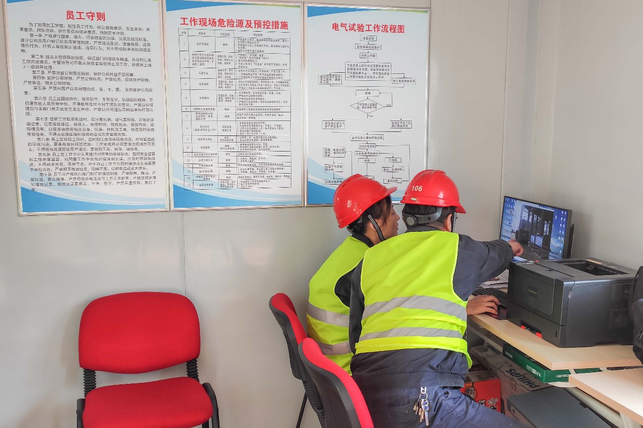 現(xiàn)場文明作業(yè)方面,結(jié)合公司精細(xì)化管理要求,施工現(xiàn)場繪制了詳細(xì)的“五牌一圖”,從工器具擺放、員工守則設(shè)置、現(xiàn)場危險(xiǎn)源及預(yù)控措施制定,到電氣試驗(yàn)工作流程等作業(yè)標(biāo)準(zhǔn)化執(zhí)行,均嚴(yán)格各項(xiàng)管理制度進(jìn)行。