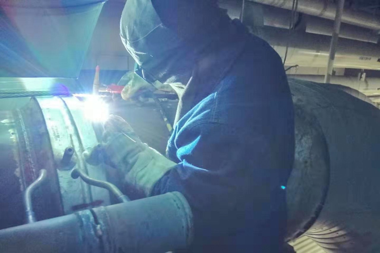 由于施工現(xiàn)場上方管道密布,作業(yè)面下方小機油系統(tǒng)還處于運行狀態(tài),給檢修工作帶來極大的不便,工作人員或躺或趴在工作面上,小心翼翼地進行著每一項工作。經(jīng)過連續(xù)七天的加班加點奮戰(zhàn),順利完成了全部檢修工作。