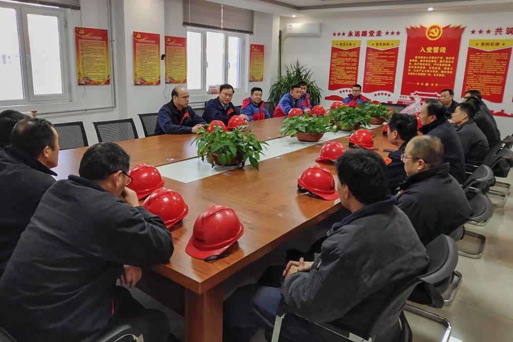1月1日,新年伊始,趙石畔煤電公司總經(jīng)理王學(xué)民一行來趙石畔項目部,交流指導(dǎo)工作,看望慰問節(jié)日期間堅守一線的干部職工。