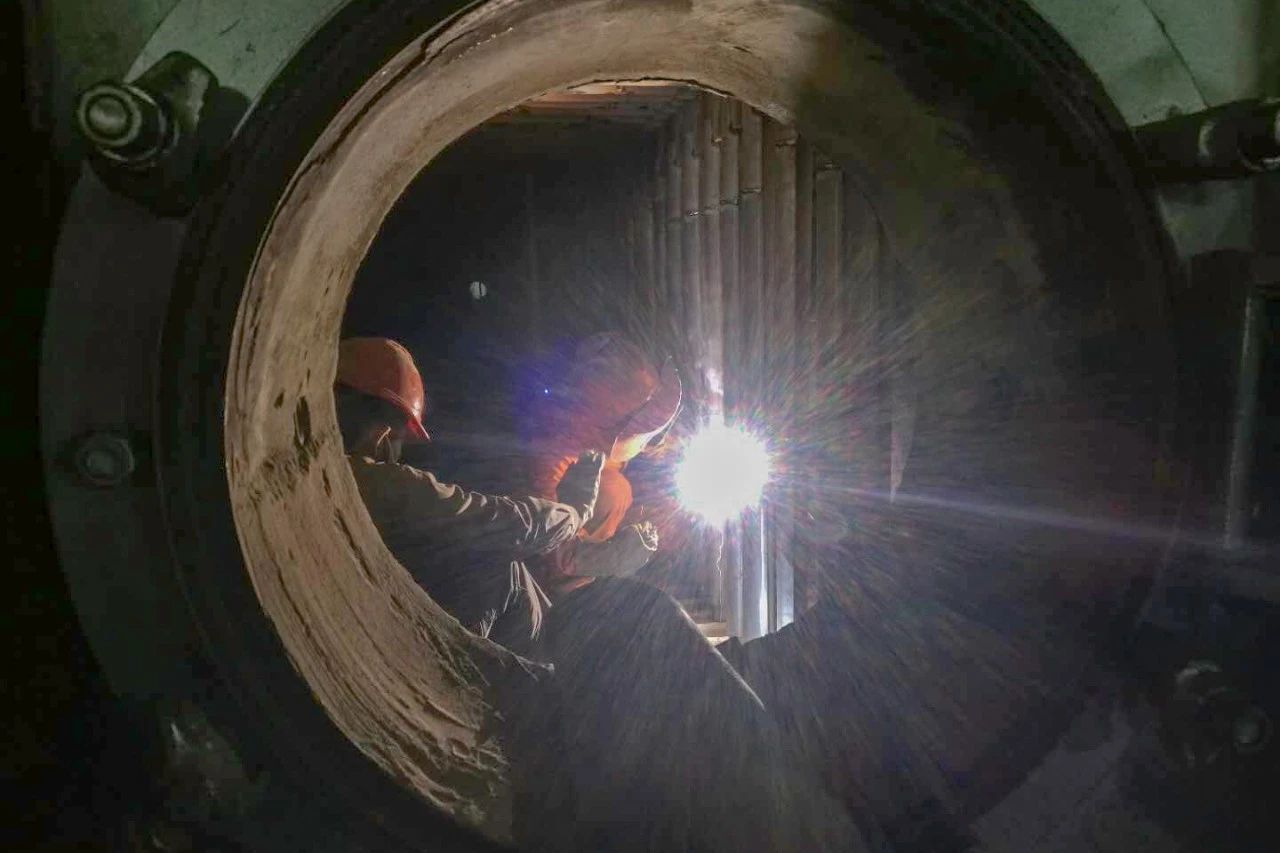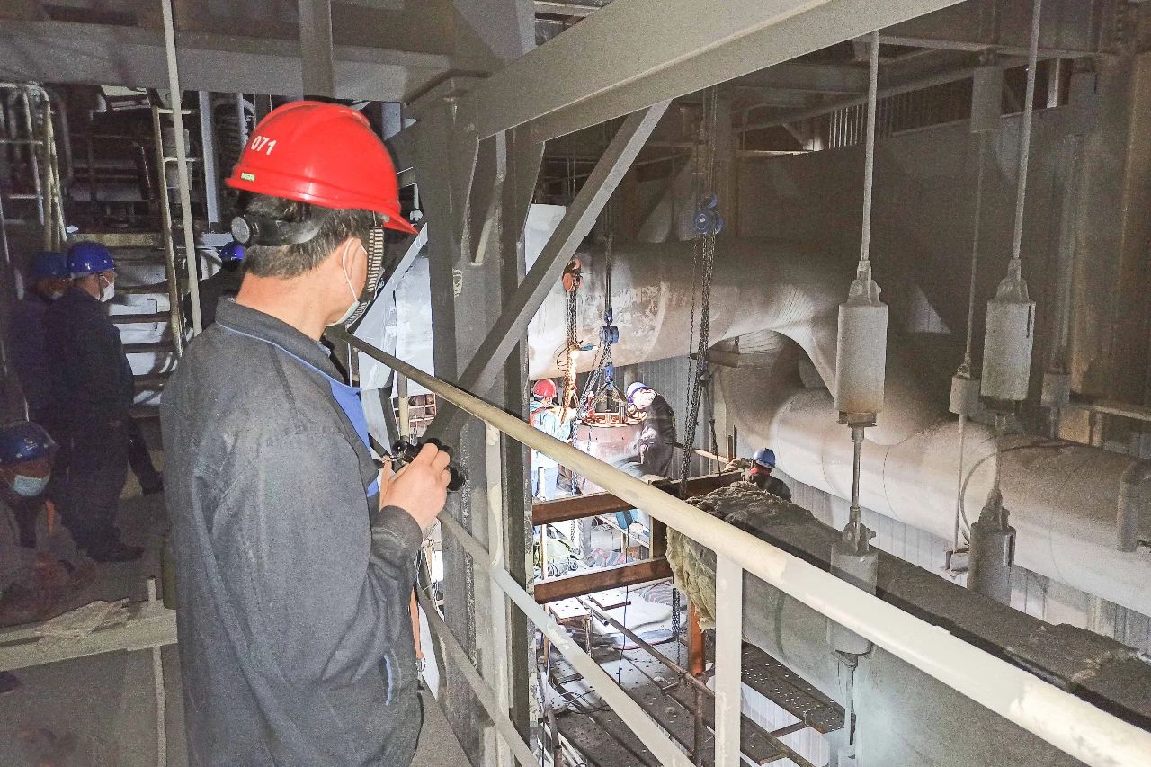 3月5日,趙石畔項目部在#1爐爐膛內(nèi)更換防磨瓦