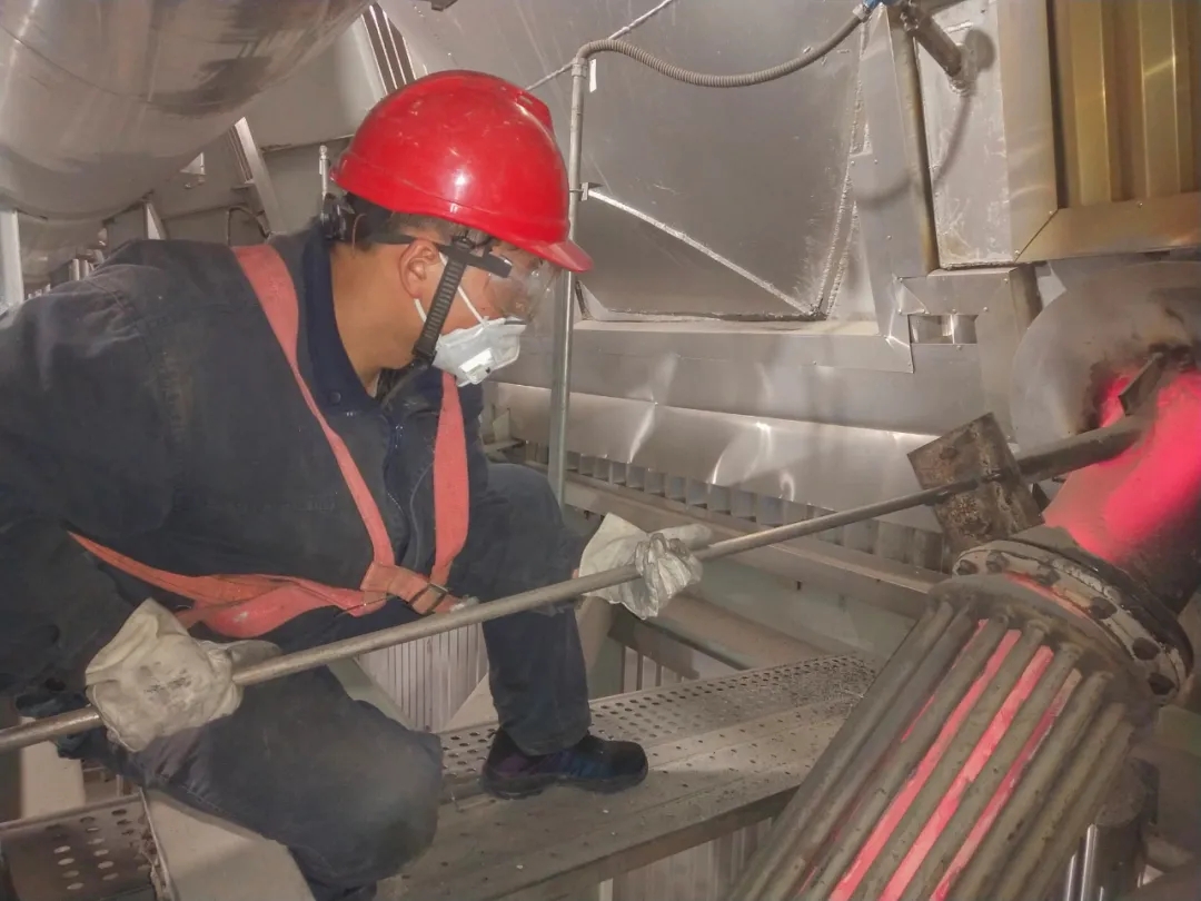 一天,正吃中午飯的崔登鋒突然接到緊急消缺通知,他撂下飯盒,就奔向現(xiàn)場(chǎng)。工作現(xiàn)場(chǎng)落渣管的溫度高達(dá)400℃,煤粉隨著陣陣熱浪撲面而來,崔登鋒完全顧不上這些,眼睛一直盯著缺陷,手中緊握的鋼釬一刻也不停下來。就這樣持續(xù)奮戰(zhàn)了五個(gè)小時(shí)后,直到險(xiǎn)情排除,他的臉上才露出笑容。