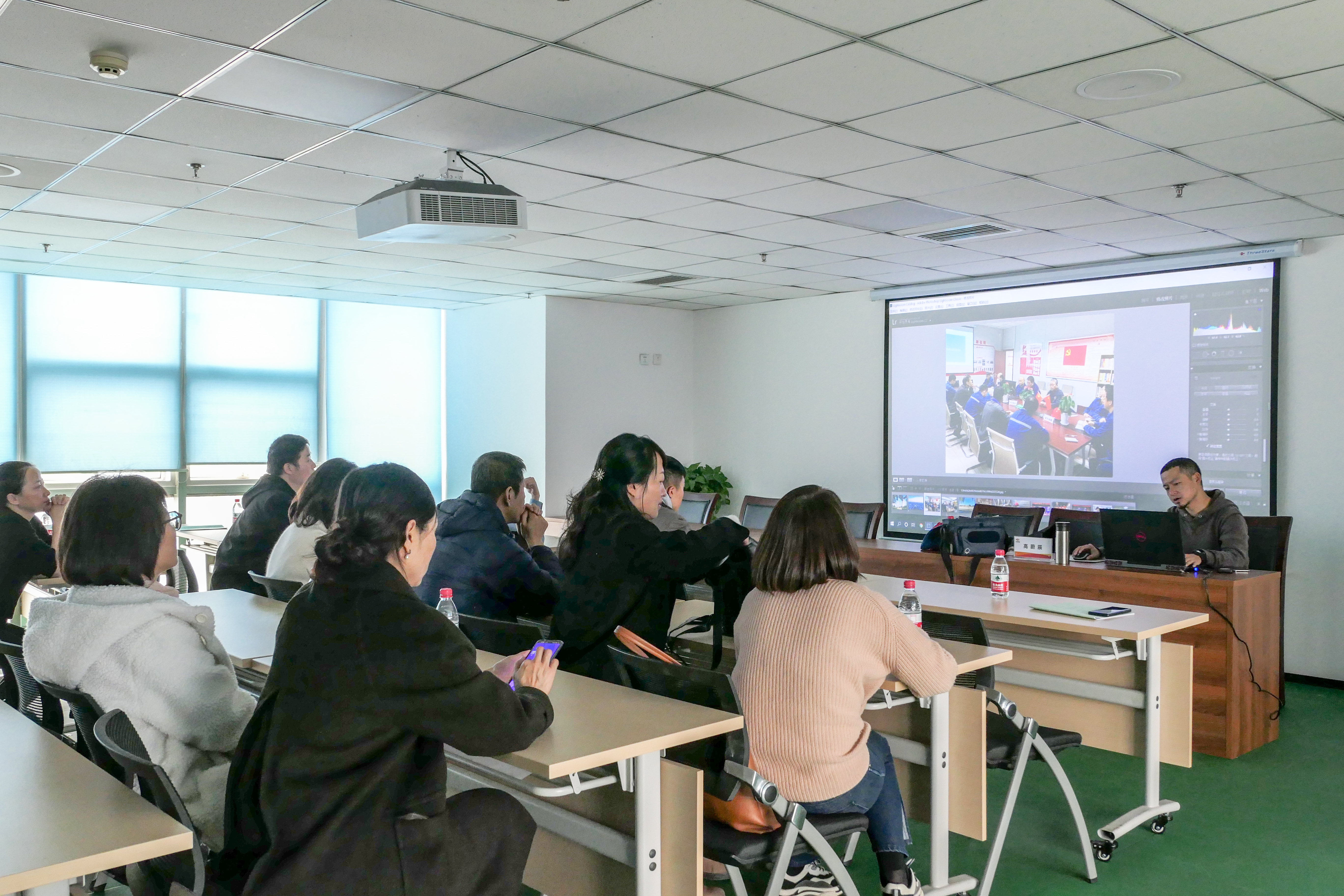 本次活動(dòng)特別邀請(qǐng)高級(jí)攝影師、影視導(dǎo)演高蔚辰進(jìn)行了專題講座《攝影技能提升》。高老師教圍繞拍攝基本操作技巧、拍照構(gòu)圖要領(lǐng)、圖片修圖要領(lǐng)等相關(guān)內(nèi)容進(jìn)行授課,重點(diǎn)對(duì)拍攝照片的思路、拍照光影要領(lǐng)及會(huì)議拍攝技巧等方面進(jìn)行了精彩講解。通訊員們現(xiàn)場(chǎng)進(jìn)行會(huì)議照拍攝練習(xí),高老師對(duì)拍攝照片中存在的問題進(jìn)行一對(duì)一講解,使大家及時(shí)得到直觀高效的指導(dǎo)。