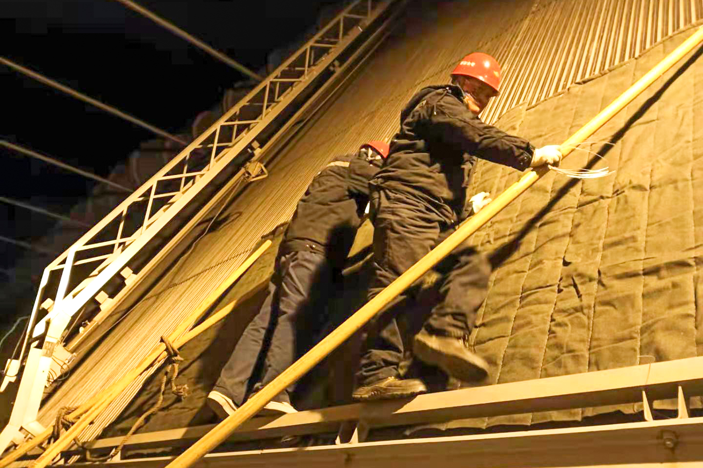 俗話說:小寒大寒、凍成一團(tuán)。面對2021年第一股冷空氣迫不及待上線帶來的“王炸級”寒潮,清水川項(xiàng)目部從預(yù)防、管控兩方面入手,進(jìn)一步完善了應(yīng)急預(yù)案,精心編制下發(fā)了防寒防凍檢查卡,全面開展了防寒防凍專項(xiàng)隱患排查工作,并有針對性地做好備品備件及御寒物資的儲備。連日來,項(xiàng)目部全體員工始終奮戰(zhàn)一線,全面打響“戰(zhàn)寒潮保供電”戰(zhàn)役。從1月5日開始,氣溫驟降至零下20℃以下,#3、#4機(jī)汽機(jī)真空出現(xiàn)了持續(xù)下降,項(xiàng)目部立即組織大批人員加入到機(jī)組設(shè)備“抗寒”工作中來。面對工作任務(wù)重、人員短缺等困難,項(xiàng)目部相關(guān)班組密切合作,給空冷器穿上了一件厚實(shí)的“防寒服”。在經(jīng)過連續(xù)14小時的奮戰(zhàn)后,凌晨兩點(diǎn)時分真空開始回升,機(jī)組安全運(yùn)行得到了有效的保障。
